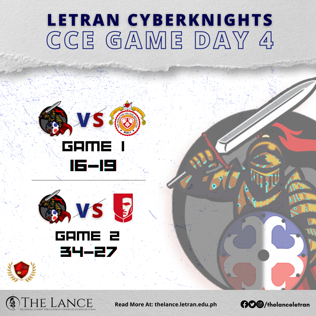 With an upset from the San Sebastian College-Recoletos and a victory at the expense of Emilio Aguinaldo College, the Colegio de San Juan de Letran Cyberknights tally a 1-3 record in the Collegiate Center for ESports’ (CCE) MLBB Tournament last July 6 and 11, broadcasted live on CCE’s Facebook page.