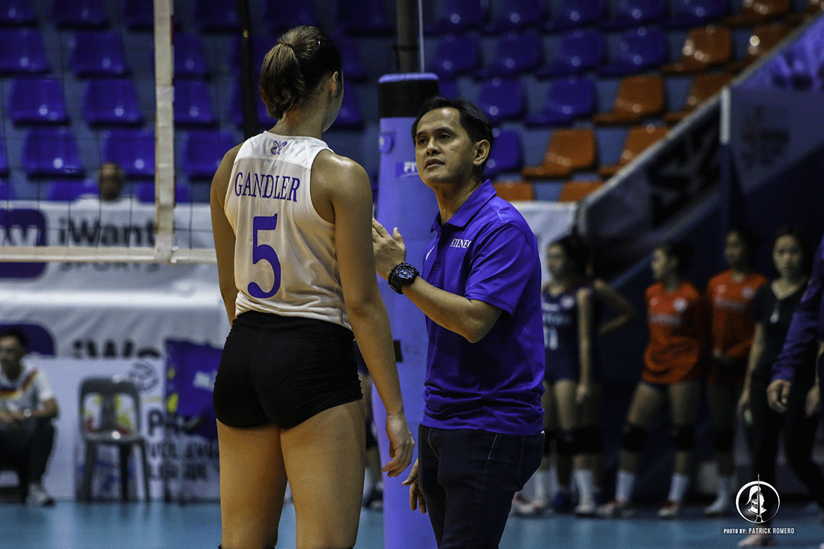 The Lady Eagles head coach witnessed as the Lady Knights suffered their first loss against his team in the PVL opener, 16-25, 25-22, 13-25, 20-25.