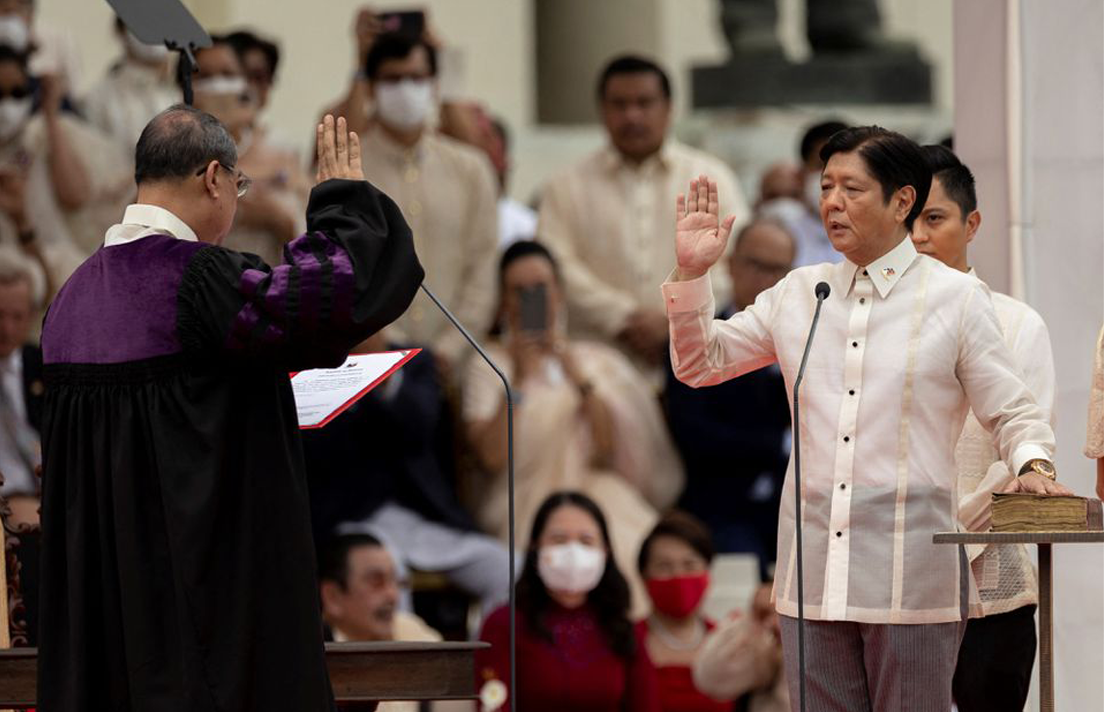 Joined with his family and close relatives, Ferdinand Marcos Jr. swore to the country that he would uphold the constitution and serve its people selflessly as President during his recitation of the oath of office delivered by the Chief Justice of the Supreme Court, Alexander Gesmundo.