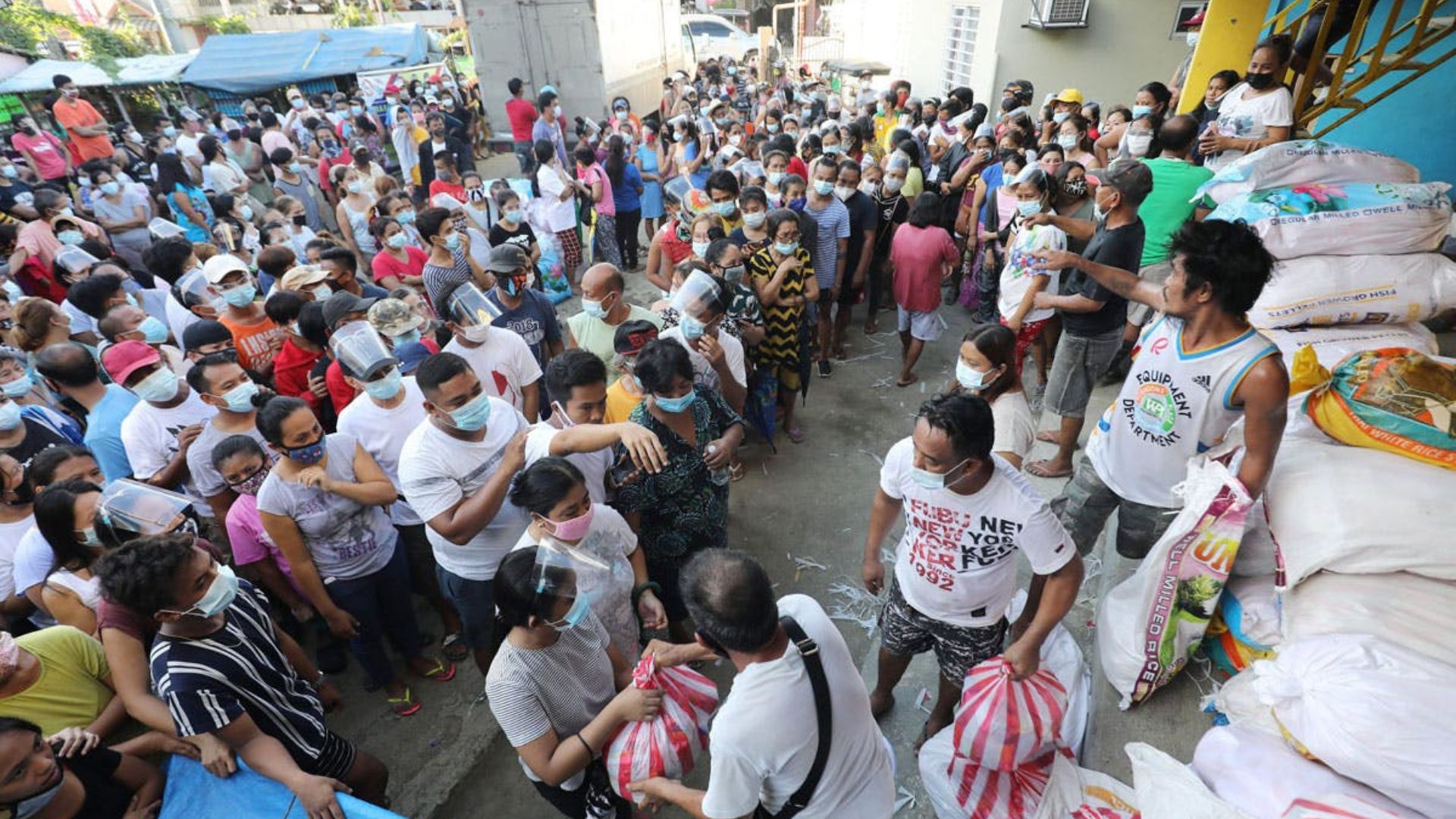 Victims waiting in line for crucial donations. Photo from Philippine Star.