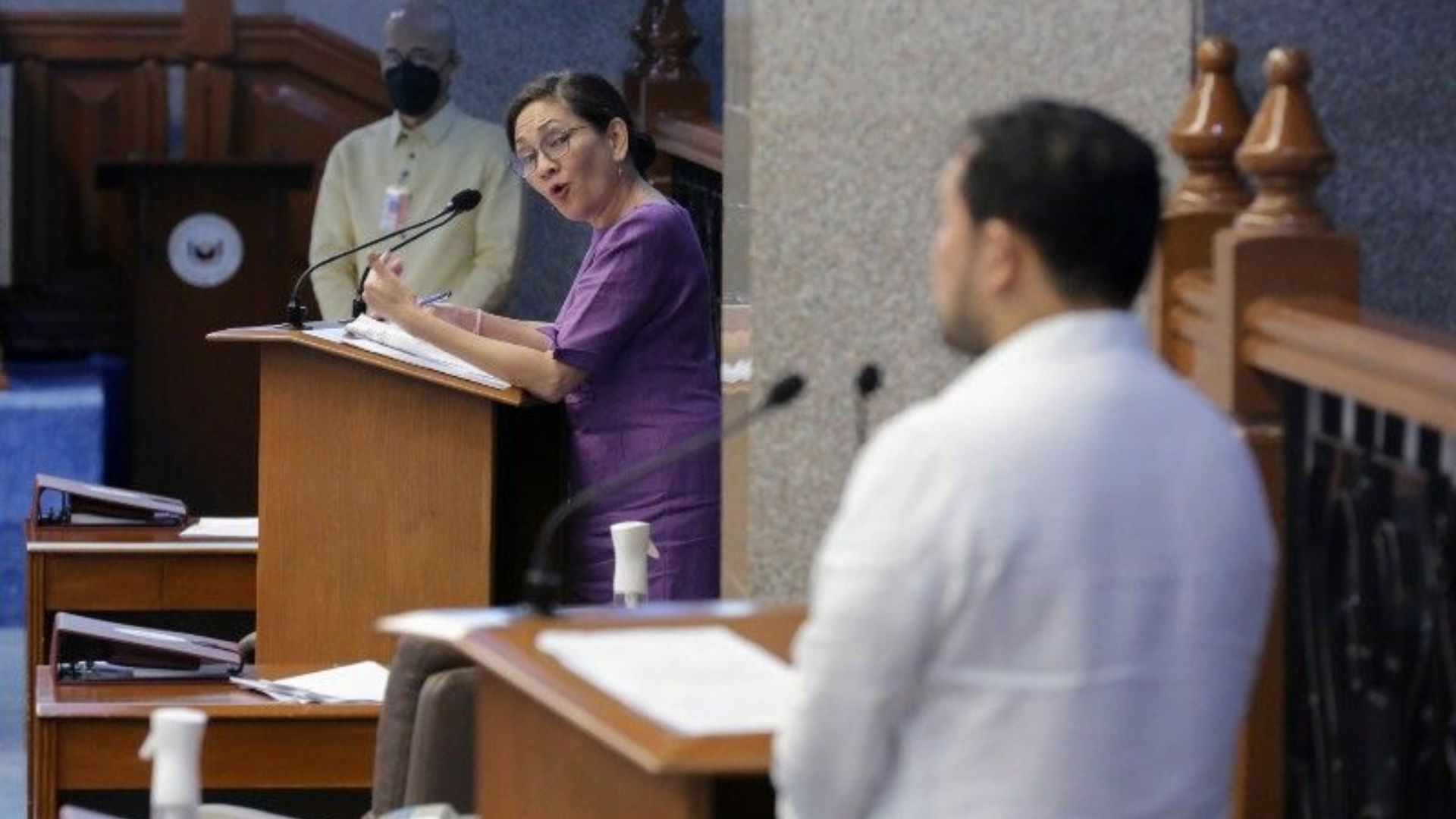 Senator Risa Hontiveros seen in an intense debate over the Maharlika Investment Fund. Photo courtesy of PhilStar Global.