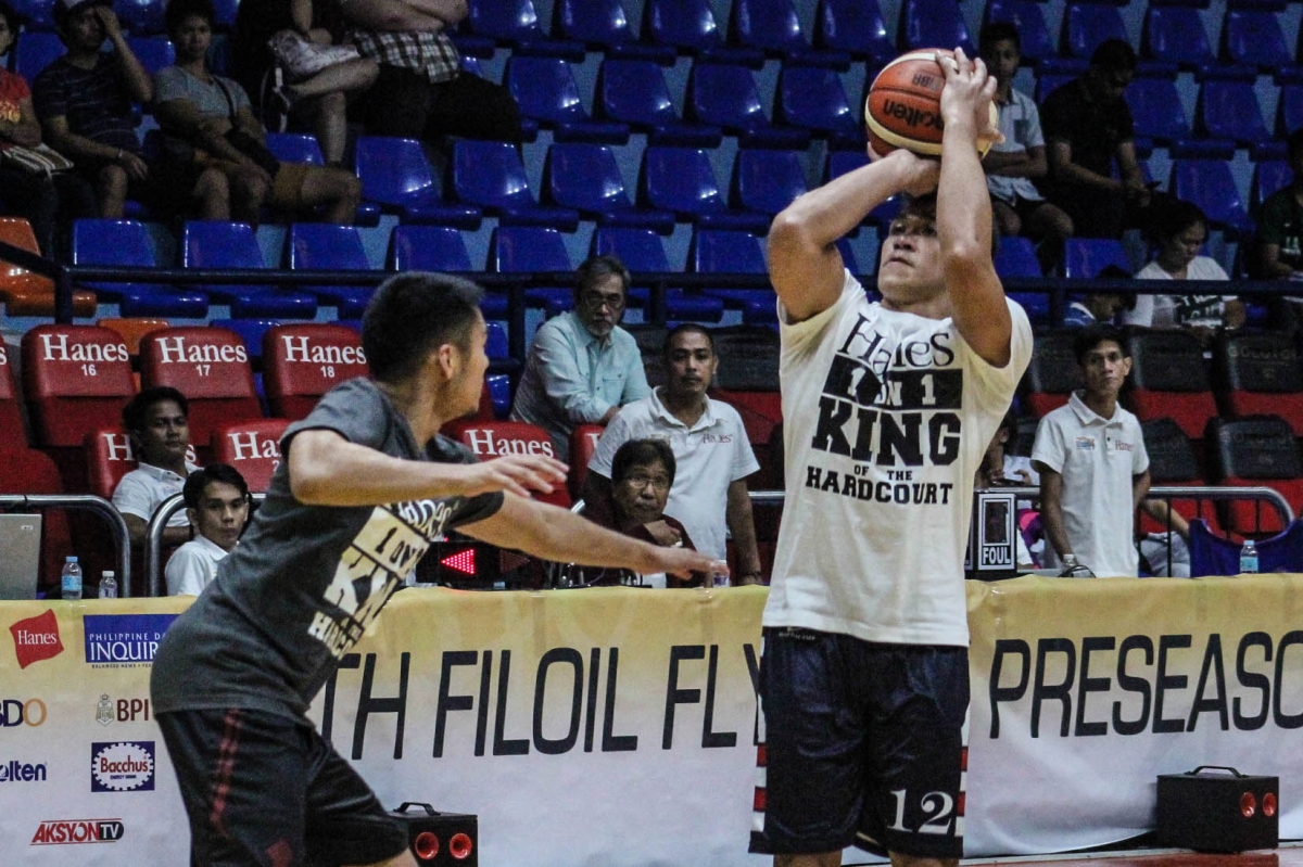 Letran Knight Jeremiah Taladua outmuscled JJ Española of the University of the Philippines Fighting Maroons, 16-9, in the Hanes 1-on-1 King of the Hardcourt, on Friday, at the Filoil Flying V Centre in San Juan City.