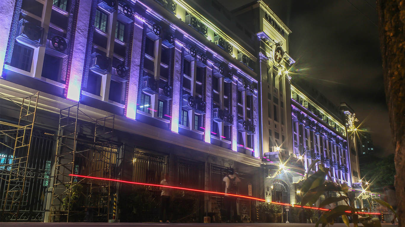 Letran facade illuminates with its newly installed lights. (Paul Sugano/The LANCE)
