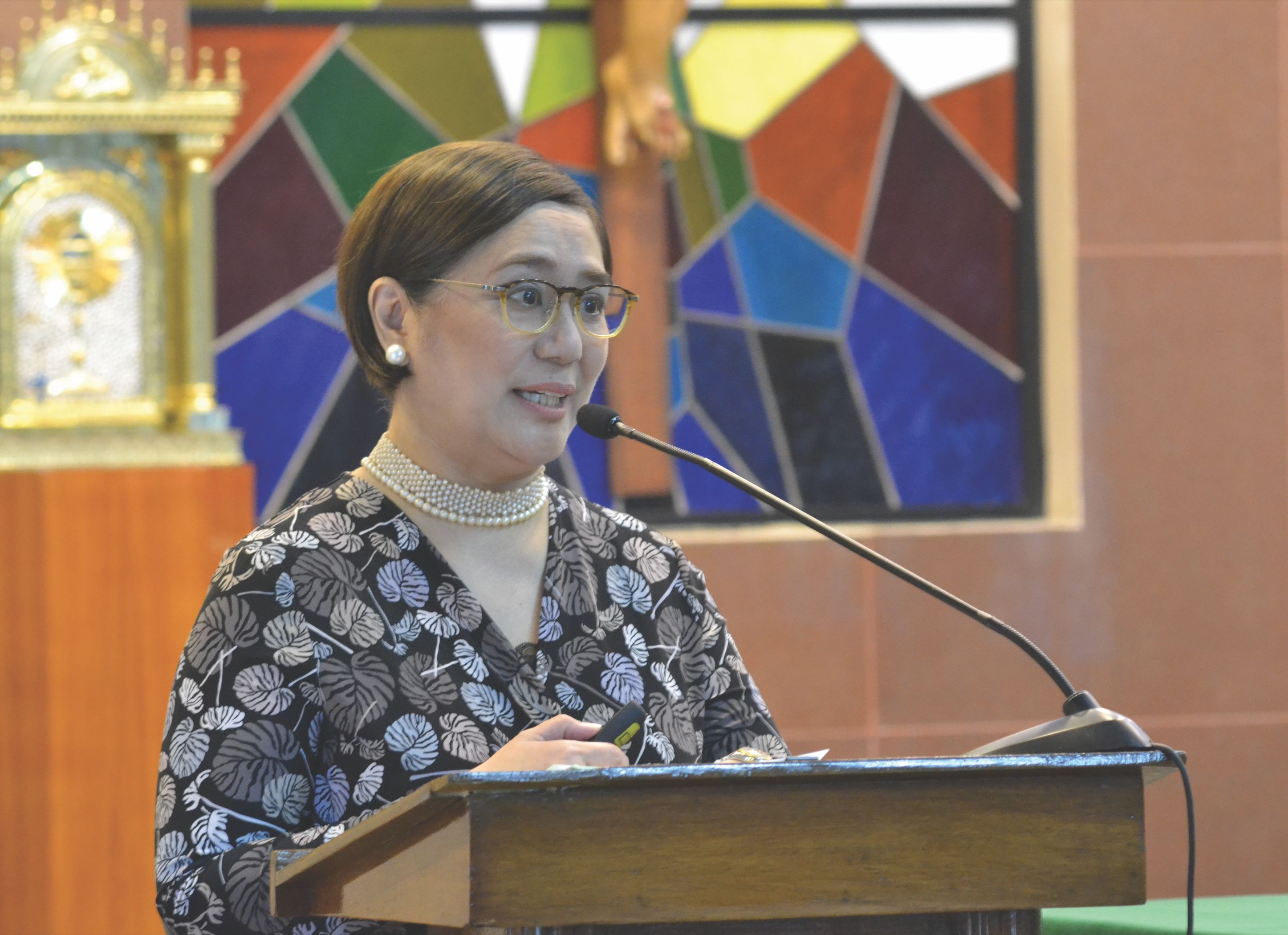 CONVEYANCE. Vice President for Academic Affairs Assoc. Prof. Cristina Castro-Cabral, PhD. delivers the yearly Arriba Address at the Colegio’s Chapel. Photo by Enrique Agcaoili.