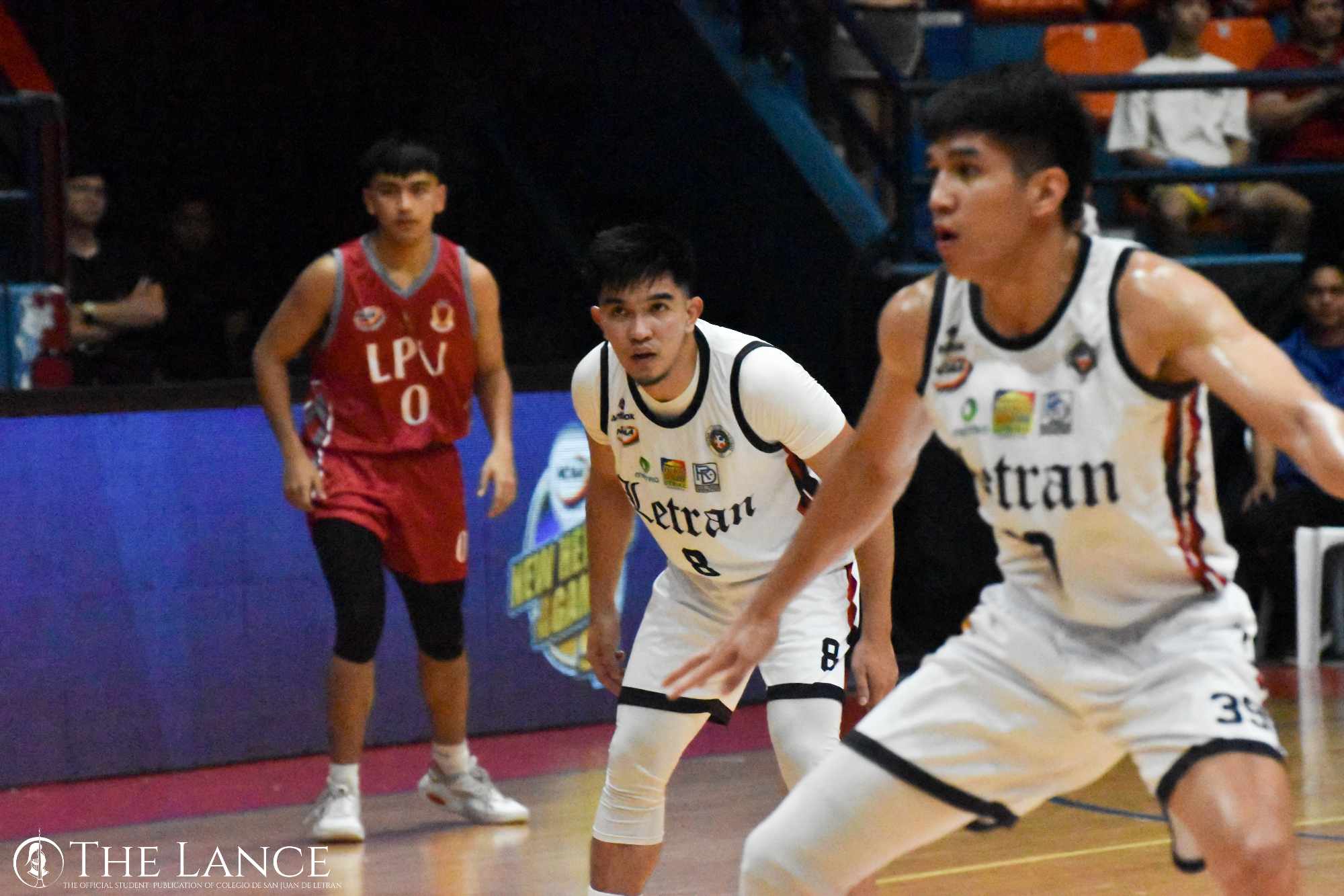 Letran Knights' Kobe Monje and Kurt Reyson moving to execute defense against the Lyceum Pirates. Photo Courtesy of Allen Matthew Velasquez.
