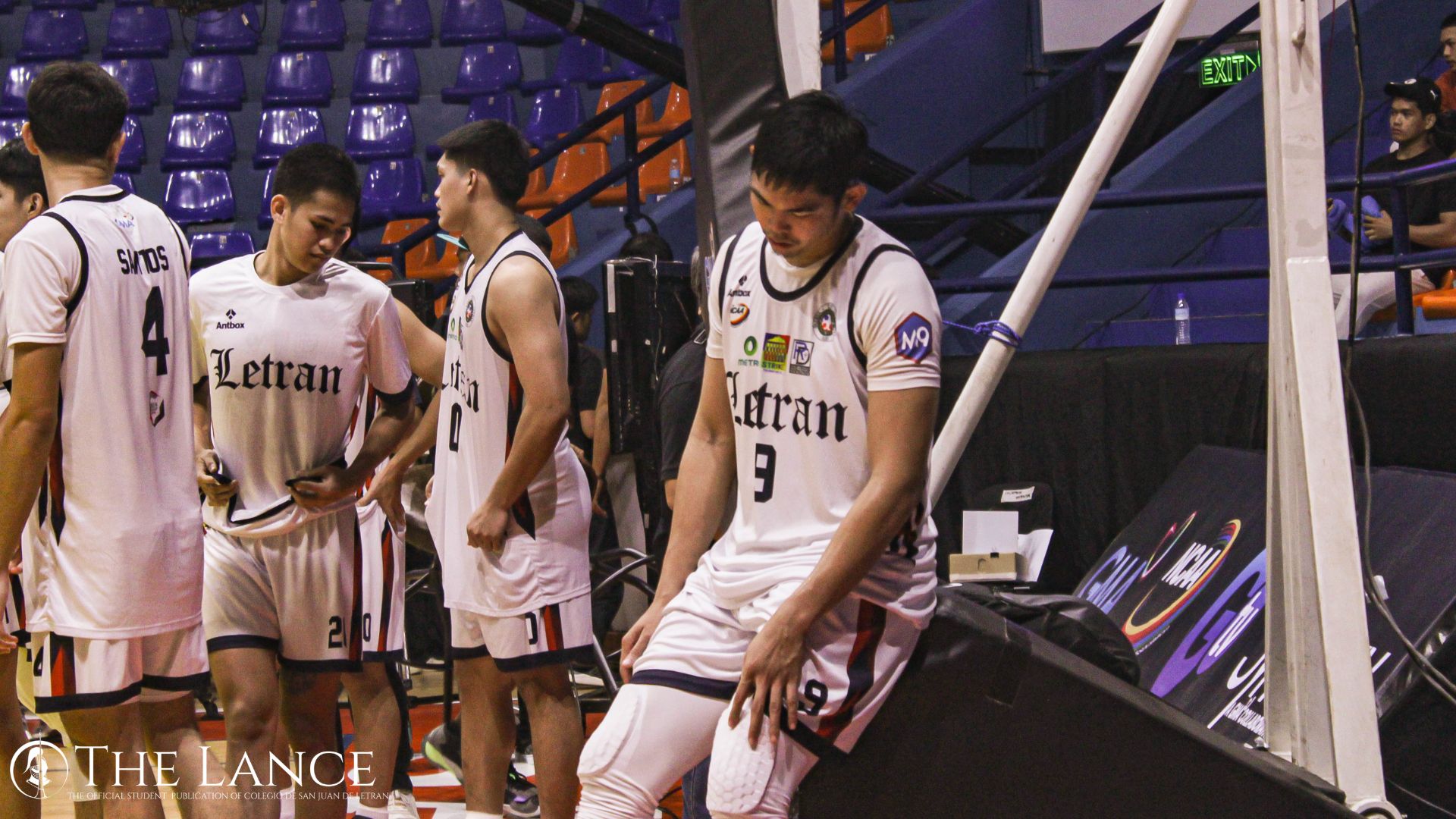The Letran Knights fail to capture a win despite close scoring against the JRU Heavy Bombers. Photo courtesy of Vicente Mate IV of The LANCE.