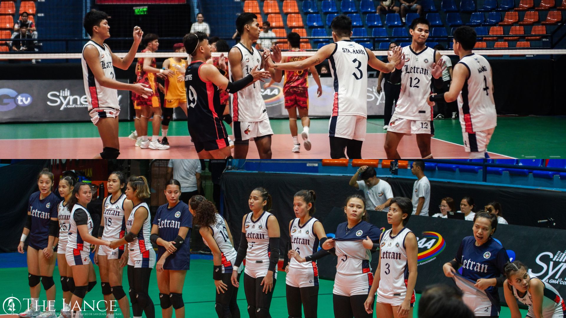 The Letran Volleyball teams face double losses after a strong showing from the Mapua Cardinals. Photo courtesy of Eduardo Nollora Jr. and William Tulagan of The LANCE.