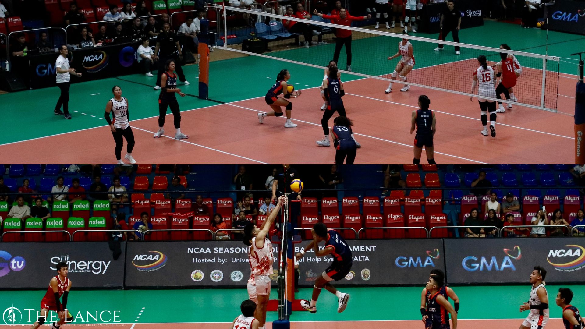 The Letran volleyball teams push for the final four spots with double wins against San Beda in the NCAA Season 99 Men's and Women's tournaments. Photo courtesy of Ram Christian Campos of The LANCE.