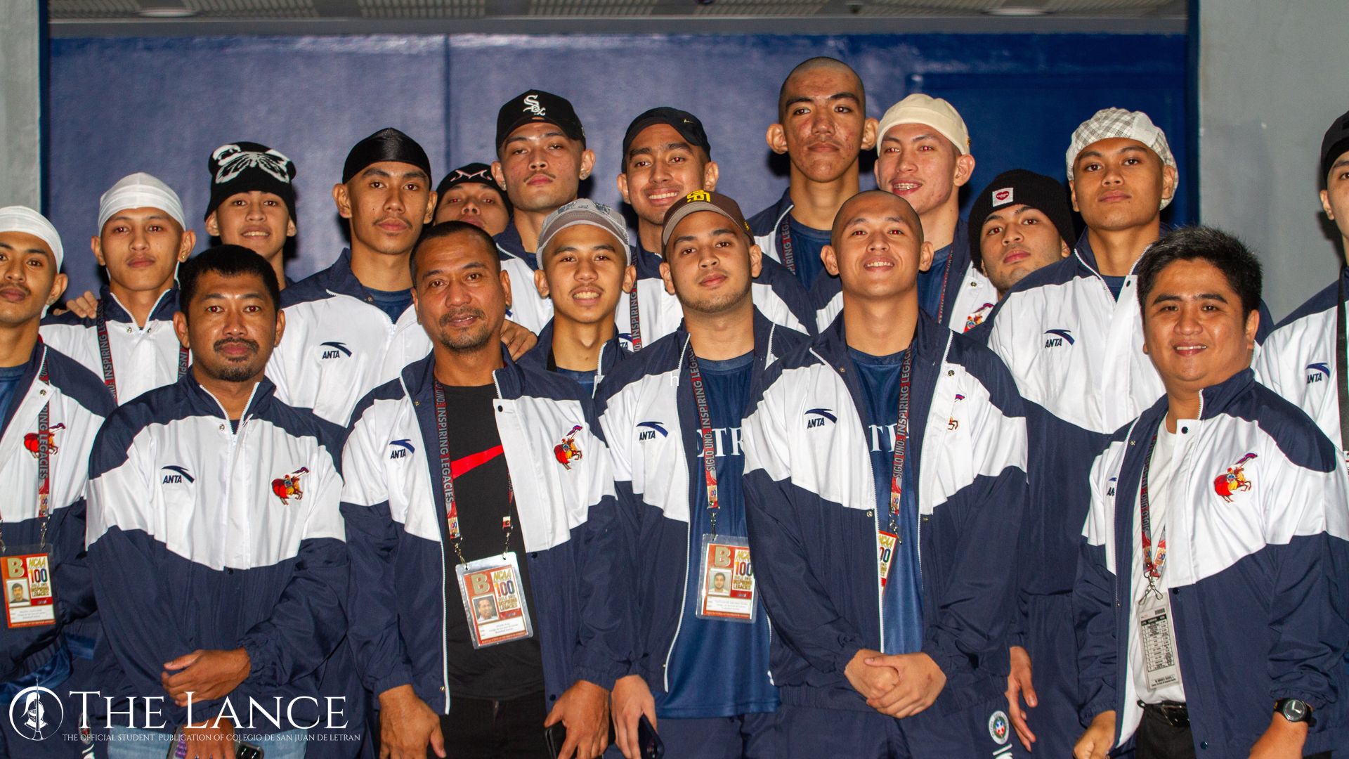 The Letran Knights proudly pose as they join the celebration of the NCAA’s centennial season. The team is geared up for another competitive year. Photo courtesy of William Tulagan of The LANCE.