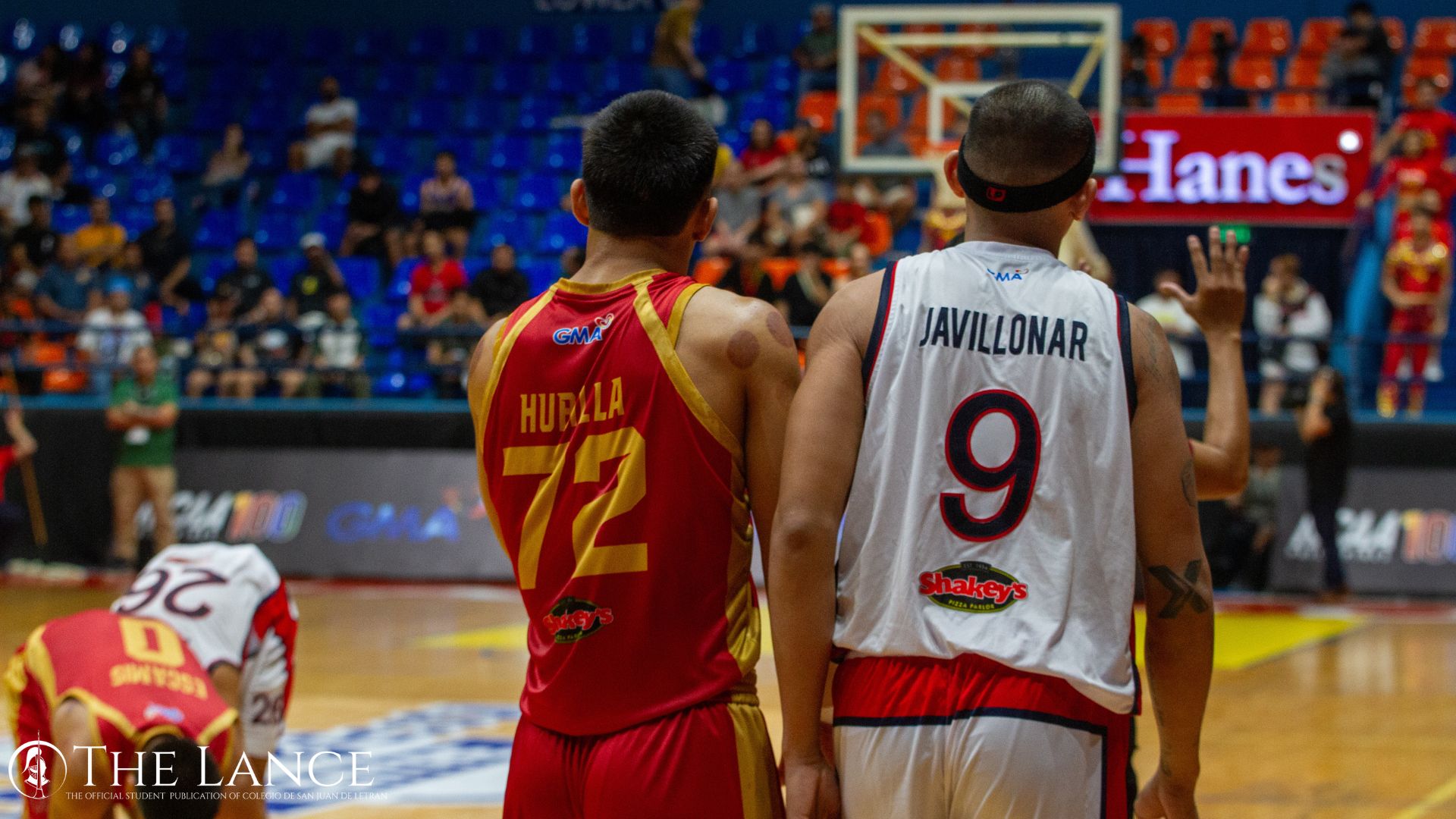 Mapua's Hubilla (#72) and Letran's Javillonar (#9) side by side during the intense Battle of Intramuros in NCAA Season 100 at FilOil EcoOil Centre. Photo credit to William Tulagan, The LANCE.
