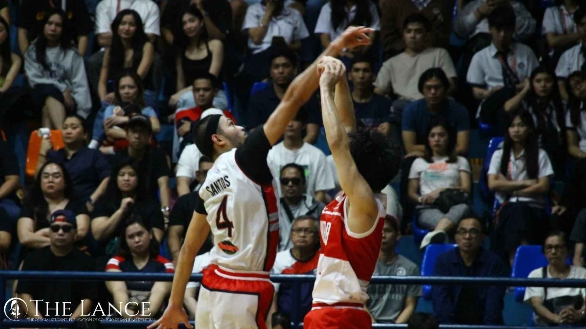 Both teams' defensive prowess were at full display during the 3rd quarter as the White and Red shirts exchanged defensive highlights to the crowd’s delight. San Beda would start to heat up with a three from Tagle to tie the game at 37-all, the lead would not last however as Santos would come with a highlight dunk of his own starting on an alley oop pass from Estrada, 39-37.