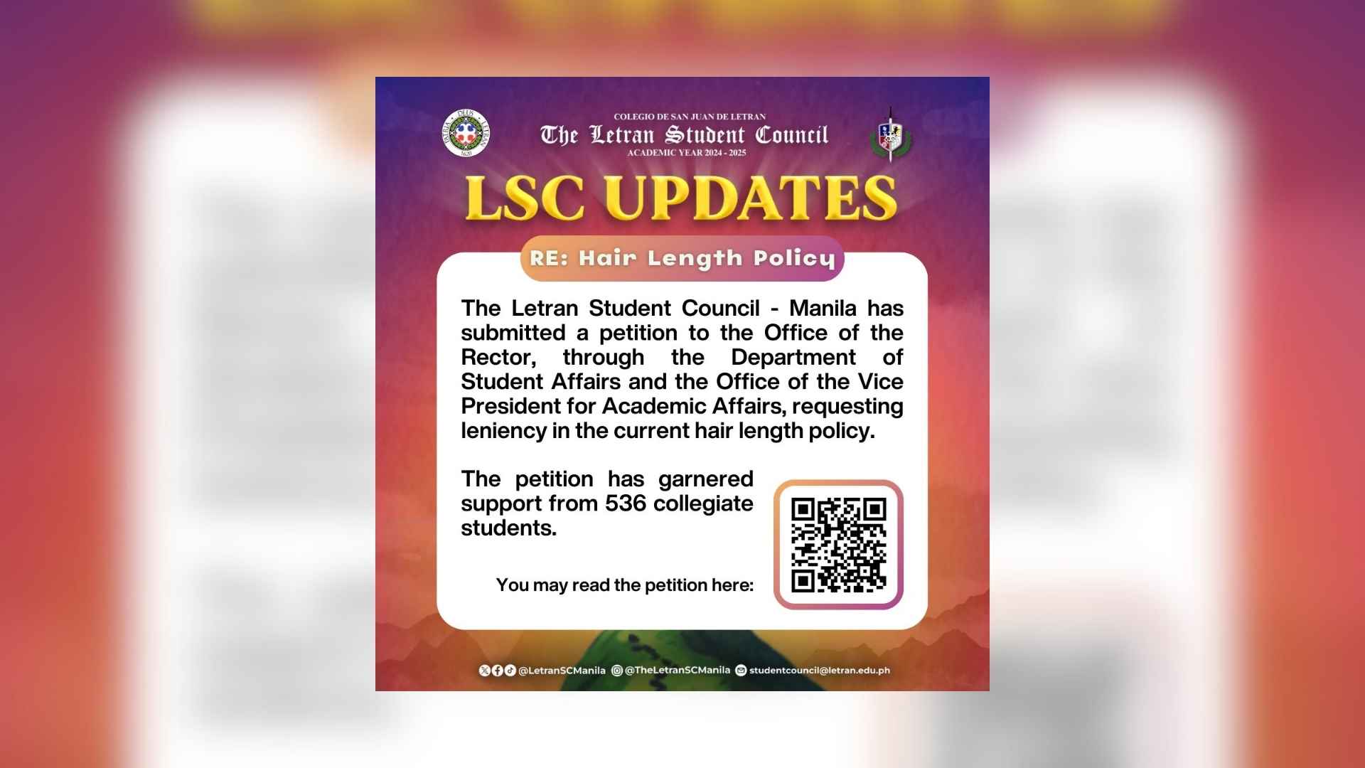 The Letran Student Council (LSC) drafted a petition requesting leniency regarding the Colegio’s hair length policy. Photo Courtesy: The Letran Student Council.