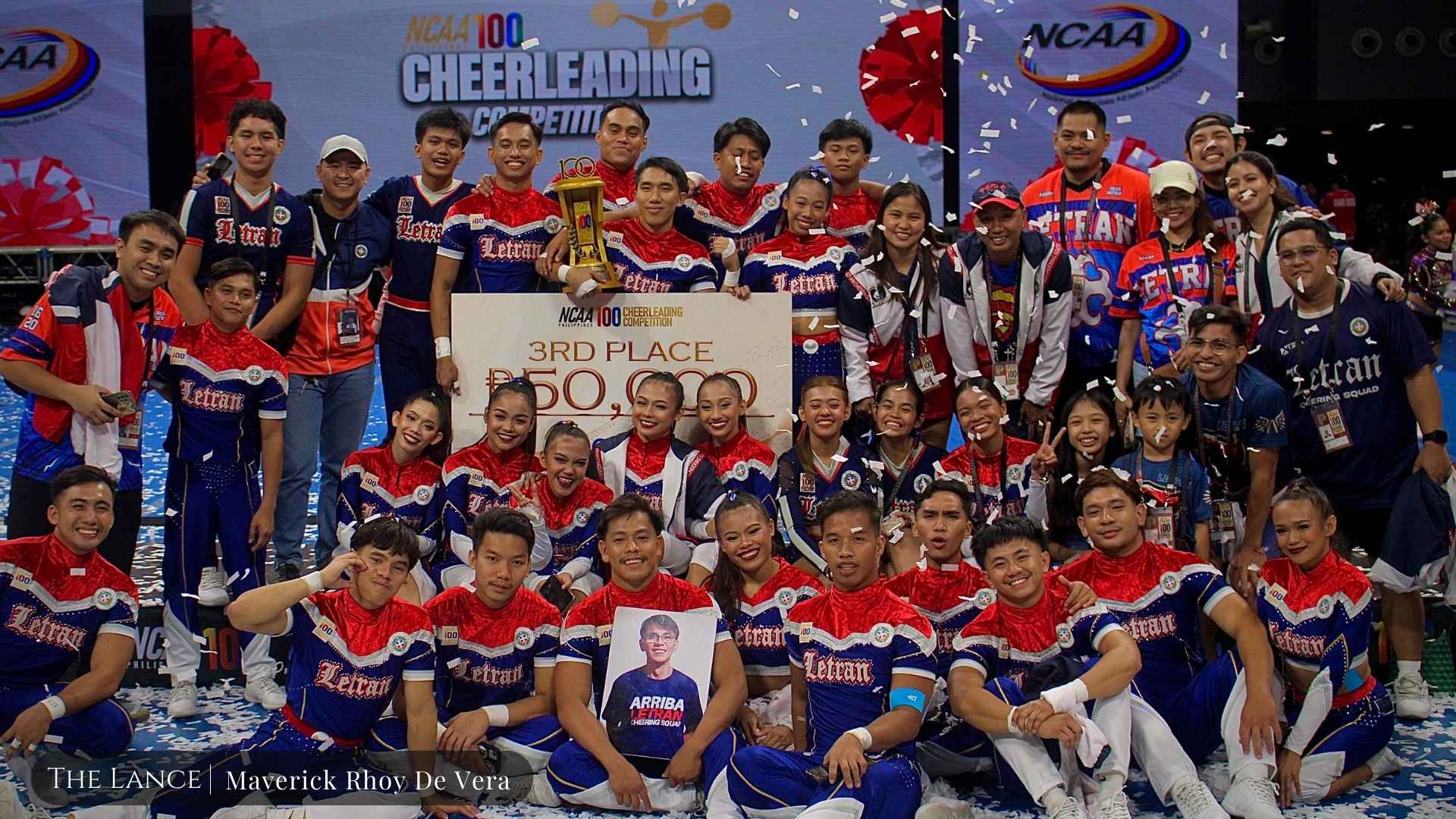 The Letran’s Cheering Squad secured third place in the NCAA Season 100 Cheerleading Competition on May 22, 2025, at the Mall of Asia Arena. Photo Courtesy: Maverick Rhoy De Vera.