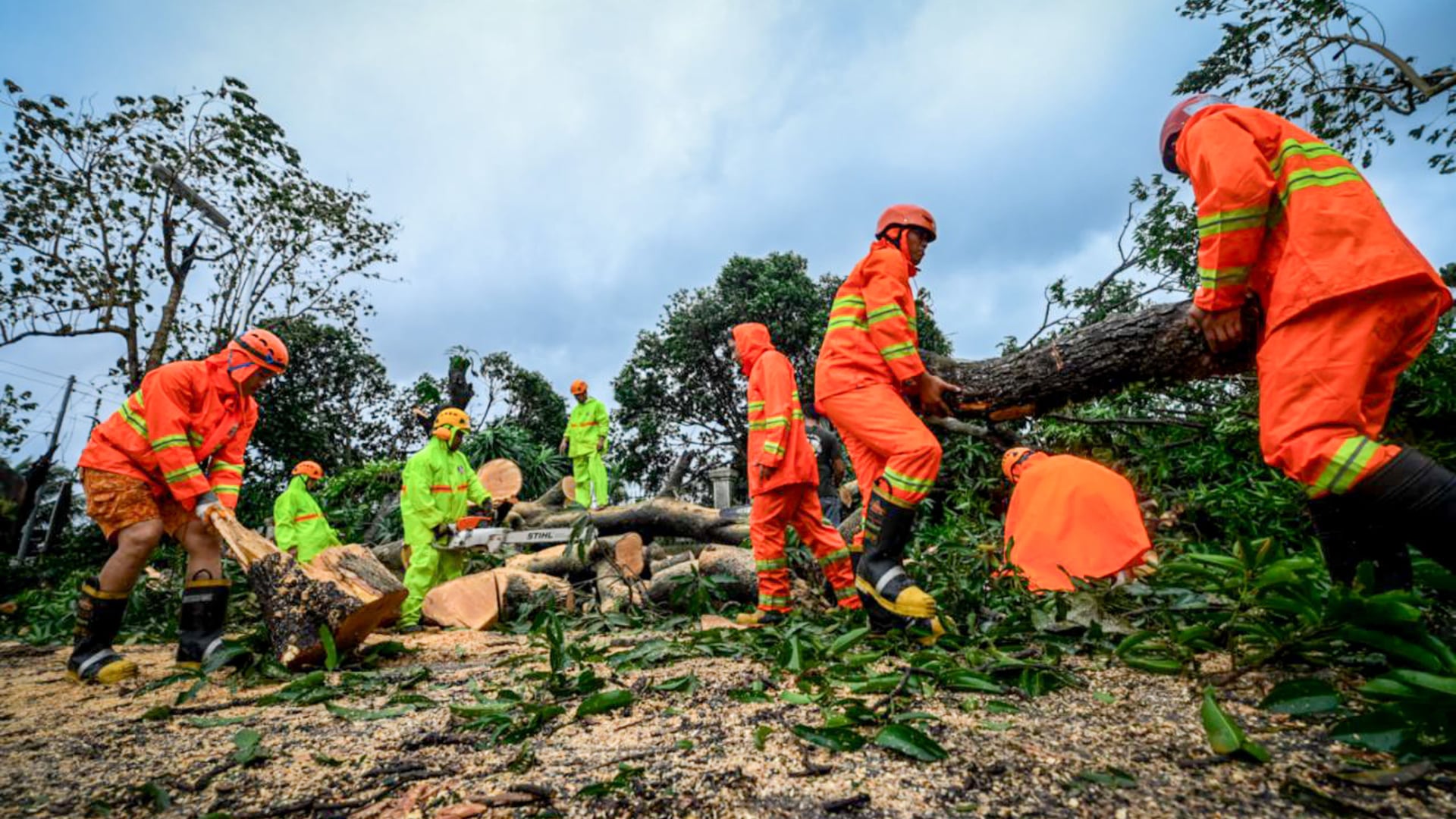 NDRRMC personnel in Conception, Rosario, La Union clear fallen trees from the road on Monday, November 10, 2025, as strong winds from Typhoon #UwanPH batter parts of Northern Luzon. Photo: Maria Tan / ABS-CBN News