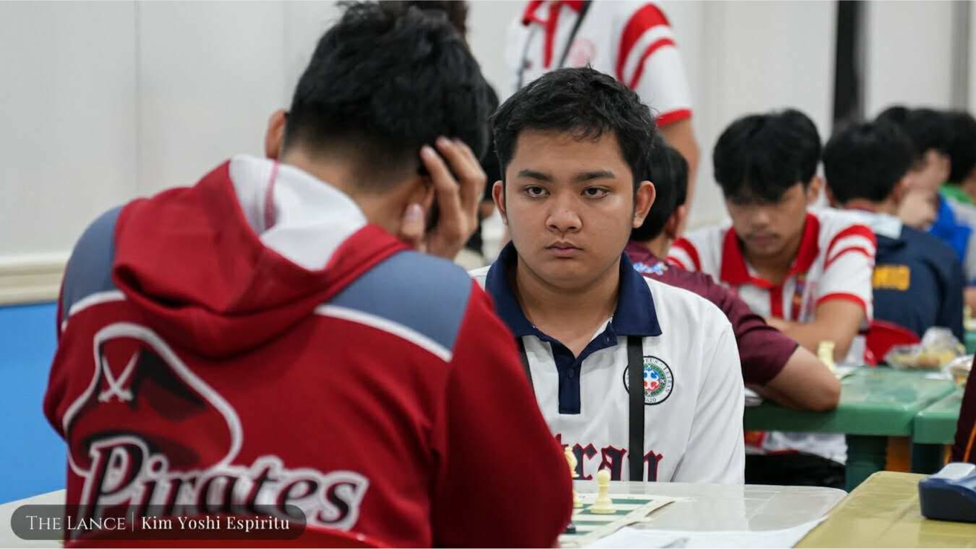 Letran’s Rafael Acuña maintains eye contact to calculate his opponent’s moves in Board 4 of the NCAA 101 Chess Round 3. Photo by Kim Yoshi Espiritu | The LANCE.