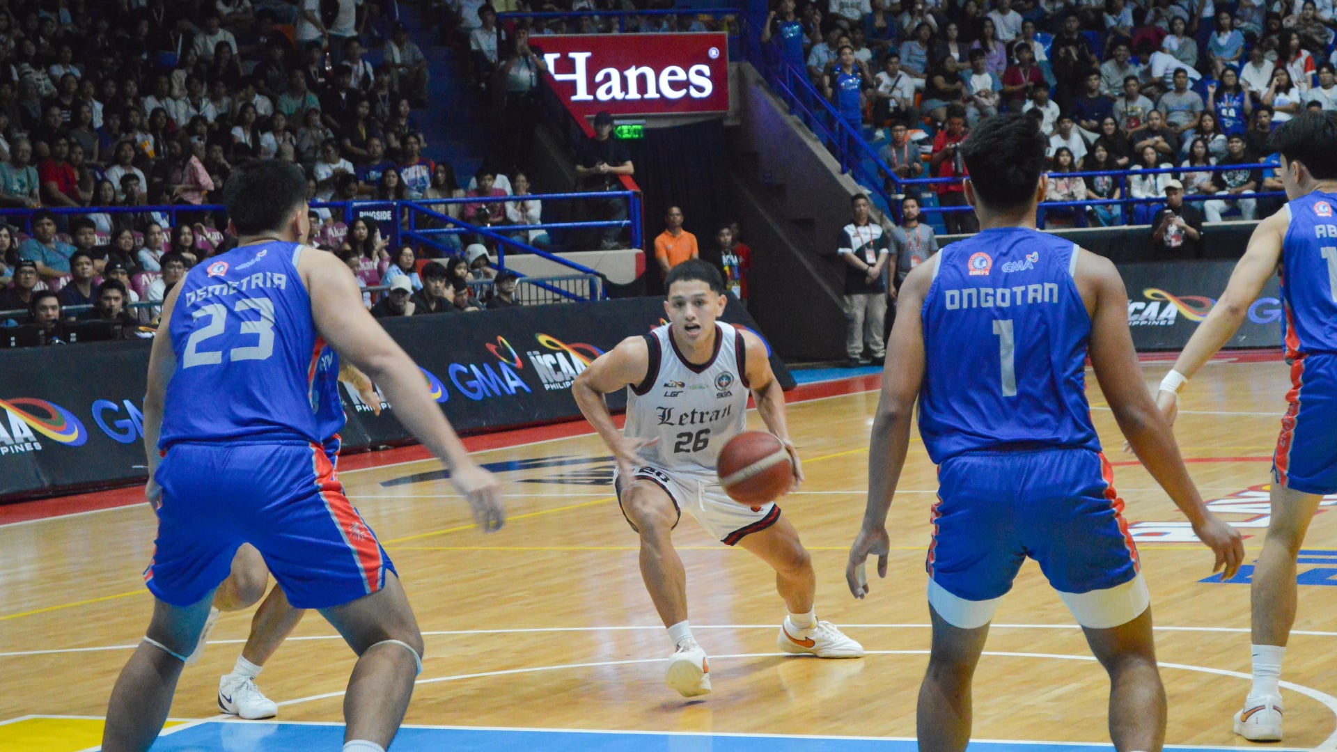 Letran guard Jimboy Estrada slices through Arellano’s perimeter defense. Photo courtesy of Zabrina Hong / The LANCE
