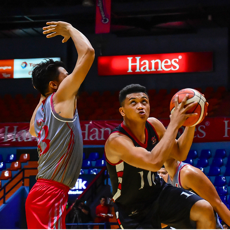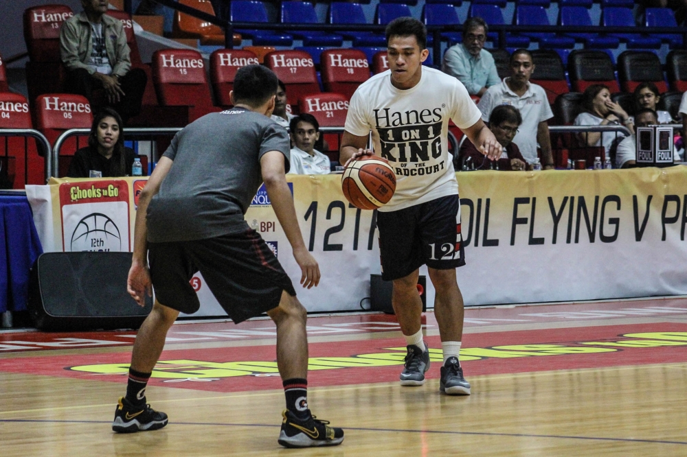 Letran Knight Jeremiah Taladua outmuscled JJ Española of the University of the Philippines Fighting Maroons, 16-9, in the Hanes 1-on-1 King of the Hardcourt, on Friday, at the Filoil Flying V Centre in San Juan City.