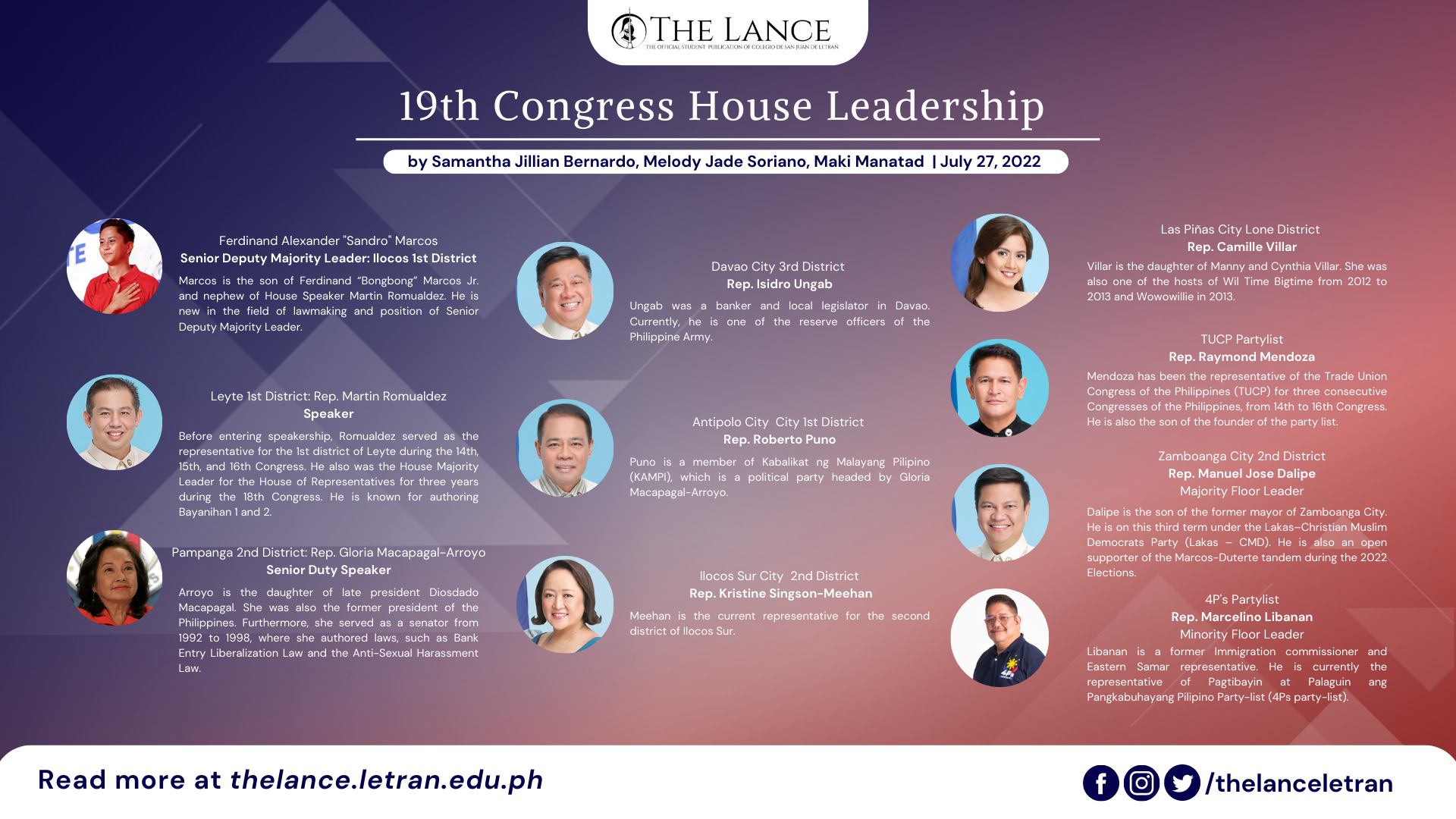 The 19th Congress of the Philippines welcomed its new set of officials on Monday, July 15, 2022, the same day as President Marcos’ first State of the Nation Address (SONA).