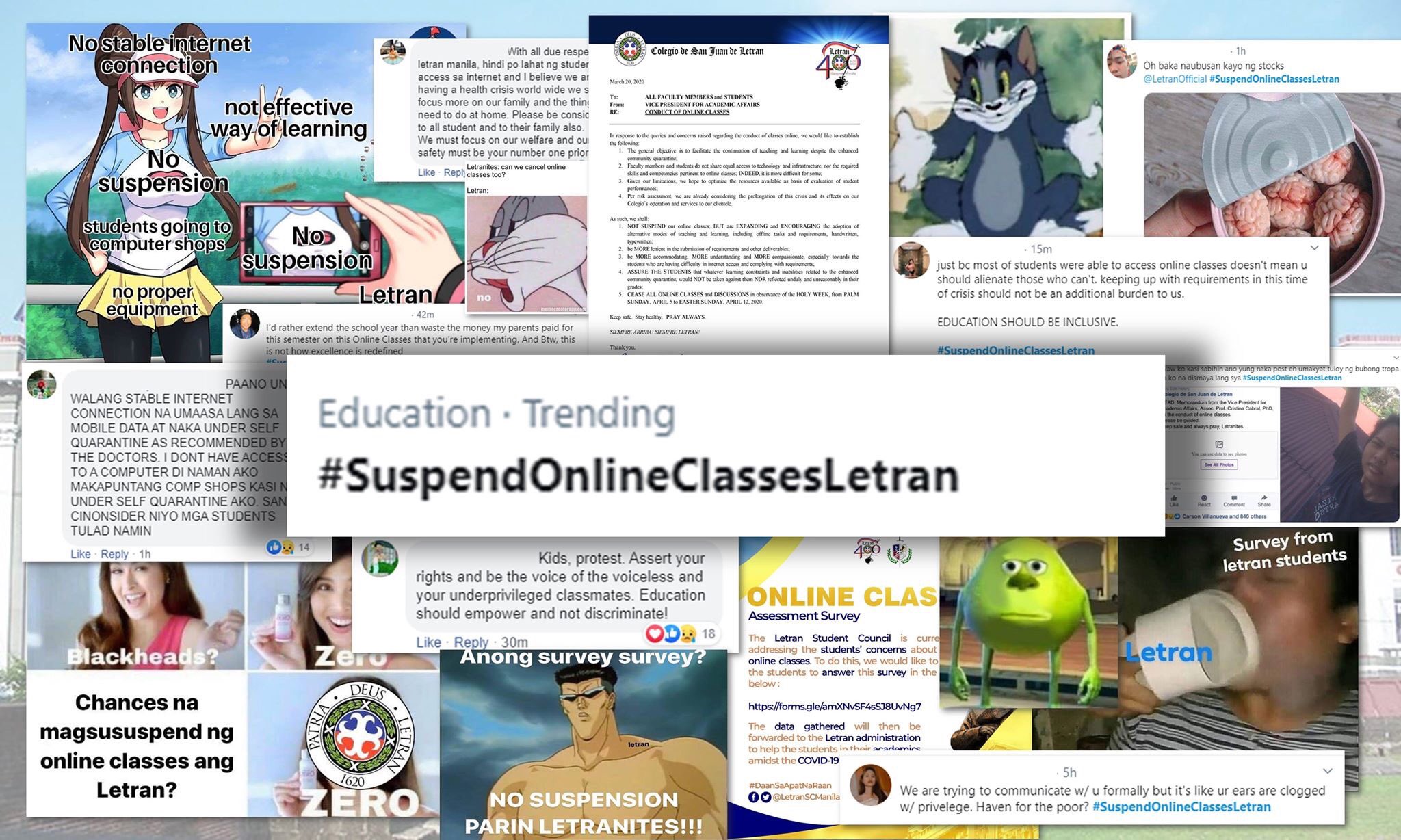 Shortly after the memo was posted, students shared their utmost dismay and #SuspendOnlineClassesLetran went trending on Twitter.
