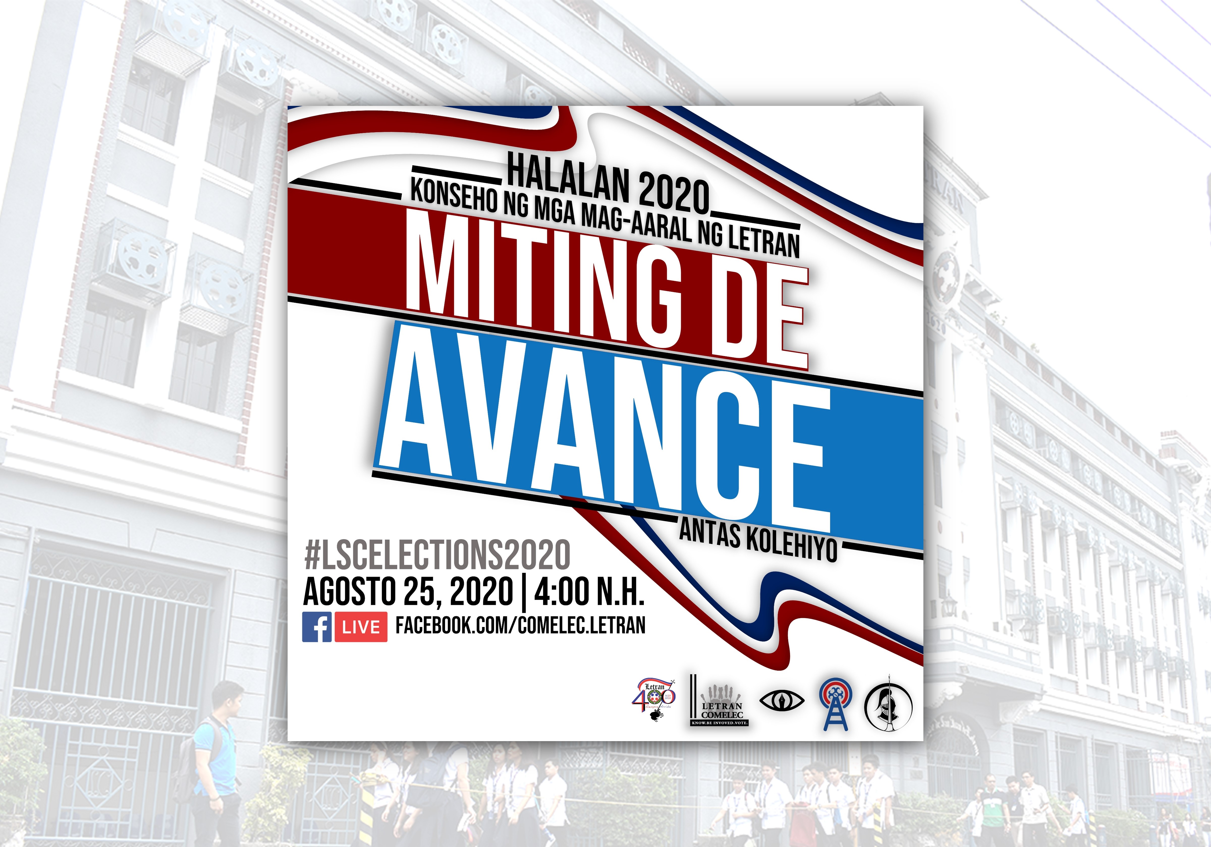 Preceding this year’s Letran Student Council election, the candidates from political parties Aksyon Alyansa Letranista (AAL) and Partido Muralla (PM) were given the opportunity to present their platforms and plans of action for the student body in the Miting de Abanse 2020 held at the Letran COMELEC Facebook page on August 25.