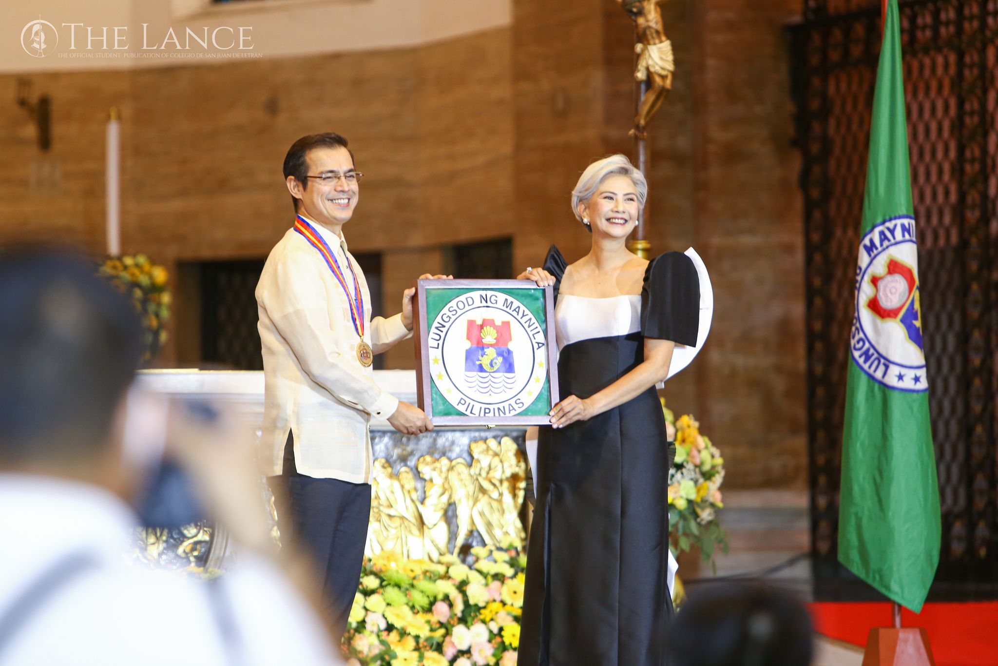 Now former Manila Mayor Francisco Moreno Domagoso with the newly elected and first female Mayor of Manila- Maria Sheila Lacuna-Pangan during her inauguration at the Manila Cathedral on June 29, 2022. Photo is courtesy of Patrick Dominic Romero of The Lance.