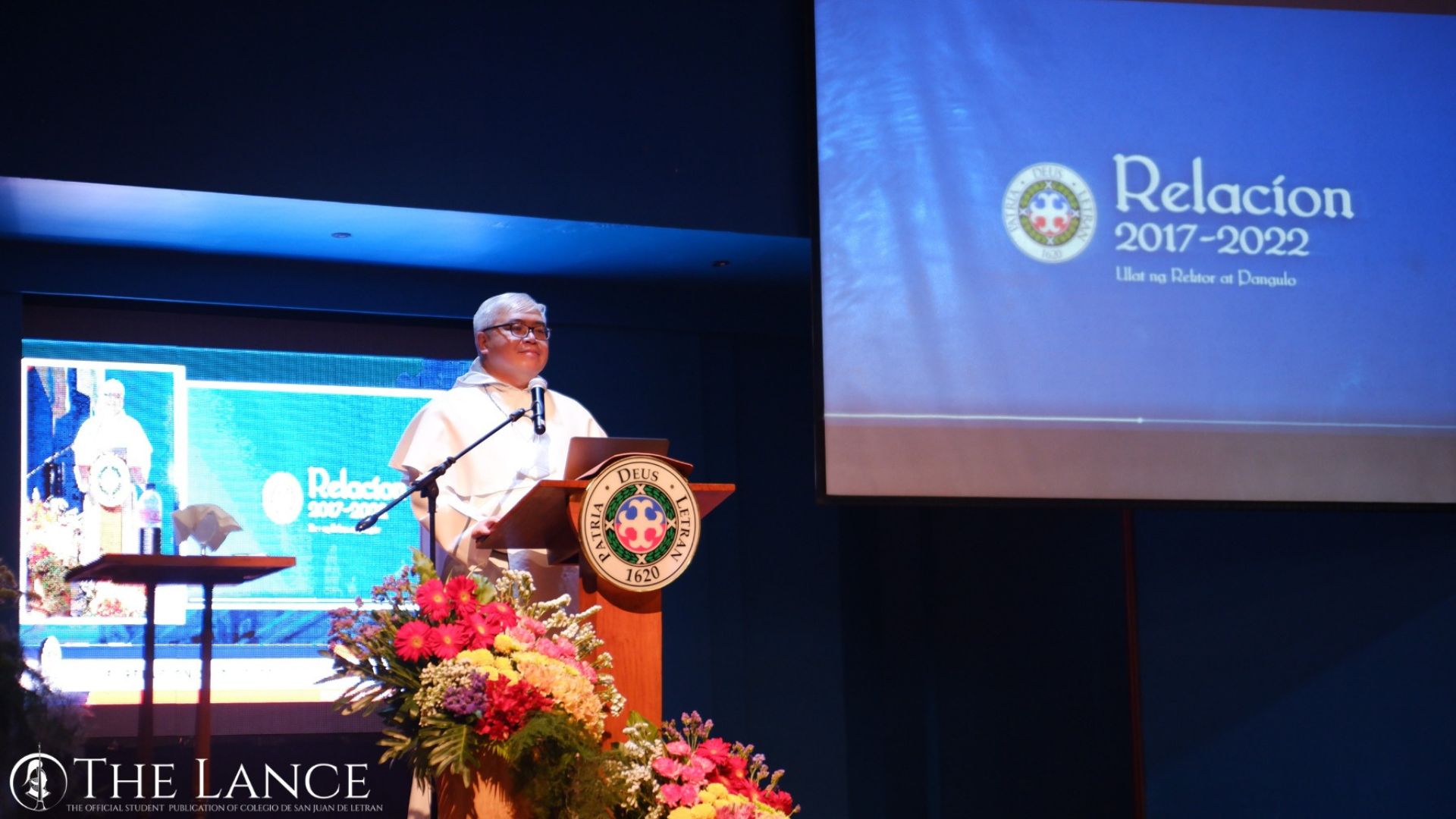 Rector and President of Letran-Manila, Rev. Fr. Clarence Marquez, OP, spearheads "Relacion 2017 – 2022" at the SC Auditorium on Friday afternoon, January 13, 2023, with the junior and senior high school students, Letran personnel and staff, and representatives from the collegiate student organizations attending the event.