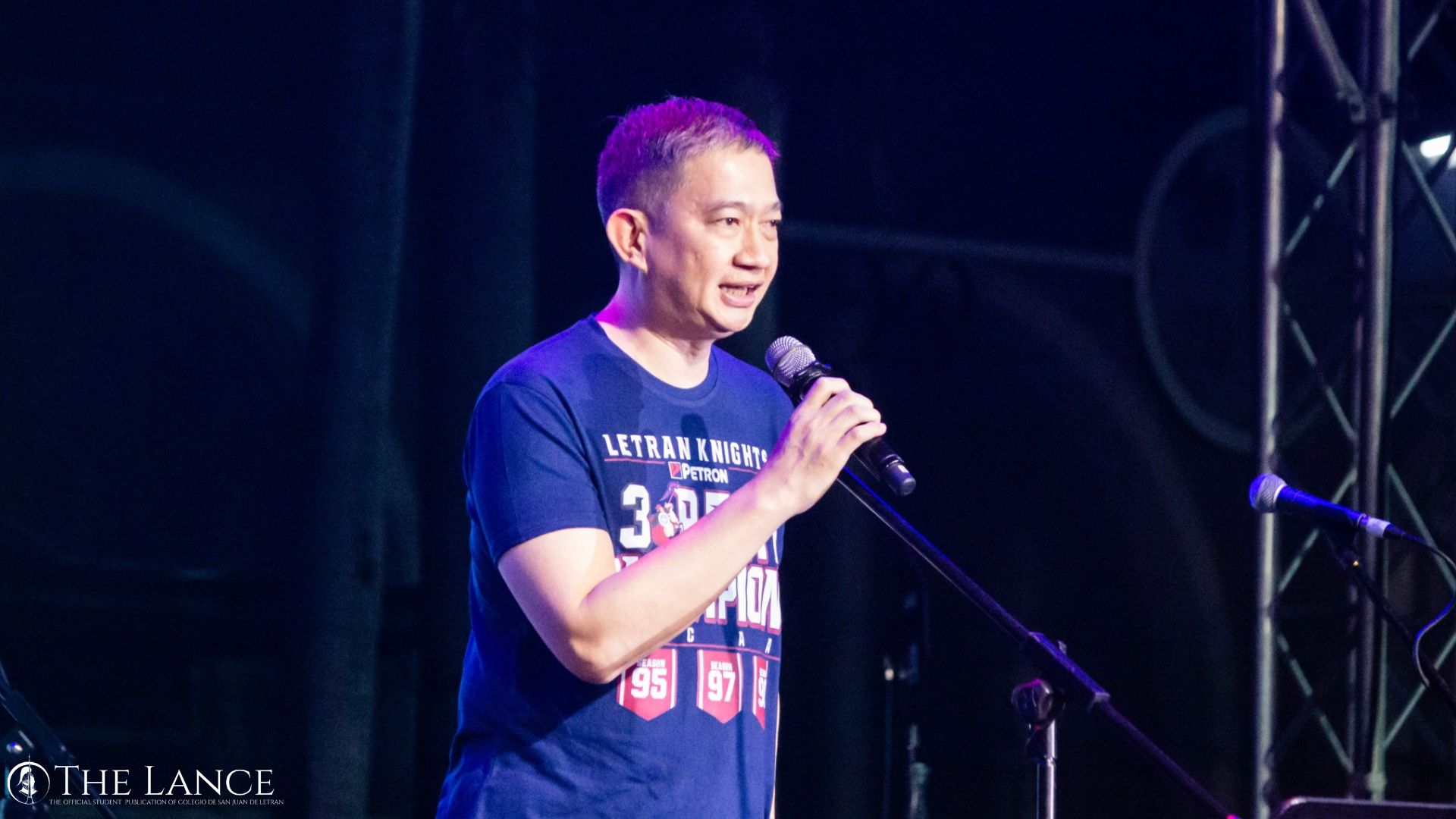 Letran Knights Coach Bonnie Tan during the Victory Party. Photo courtesy of Thomas Villanueva of The LANCE.