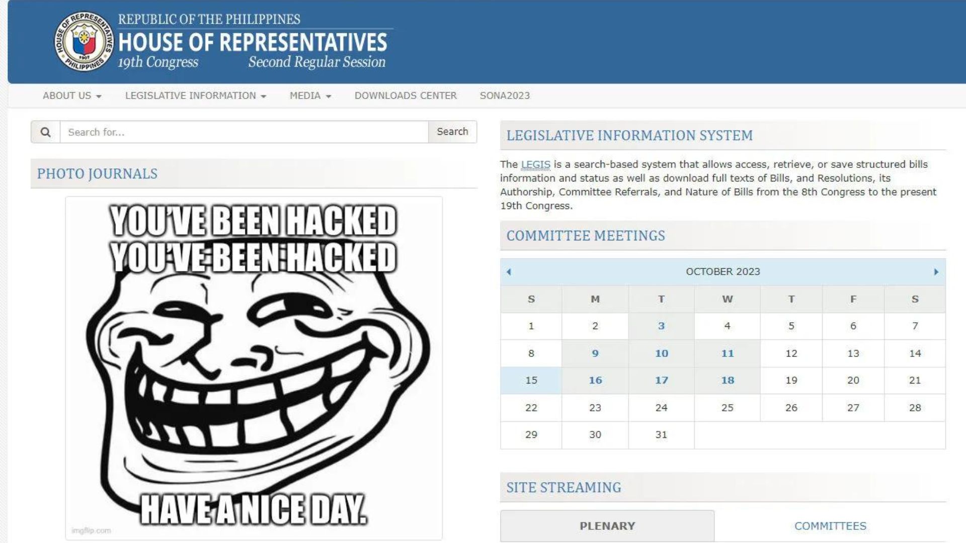 The image of a troll-face meme was shown on the house of representatives official website, compromising private data of Filipinos. Photo courtesy of Rappler.