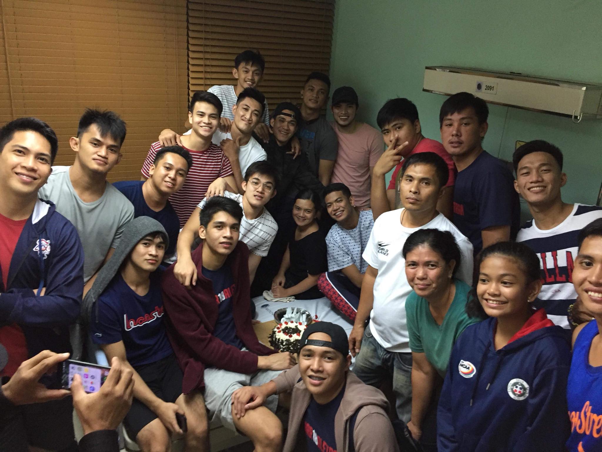 “Birthday ni Jerrick so isu-surprise namin siya, pupunta kami sa kanya sa ospital kasi yun nga sabi ‘din ni coach Jeff kanina, nalaman namin na after ng operation niya, one week namin siyang ‘di makikita,” said team captain Bong Quinto.