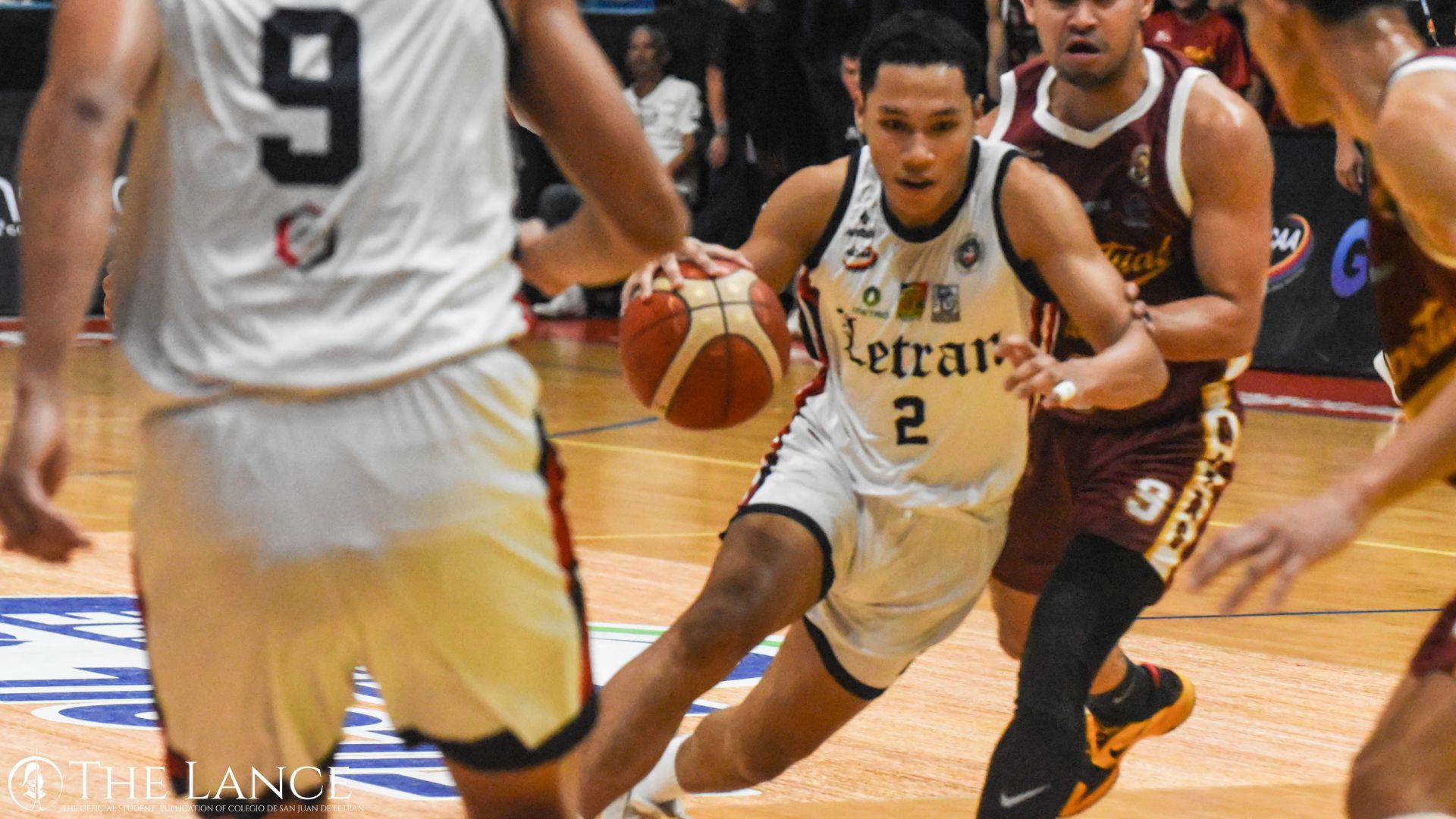 The Letran Knights suddenly fall to the UPHSD Atlas in its first game of the second round of the NCAA Season 99 Men's Basketball. Photo courtesy of Allen Mathew Villanueva of The LANCE.