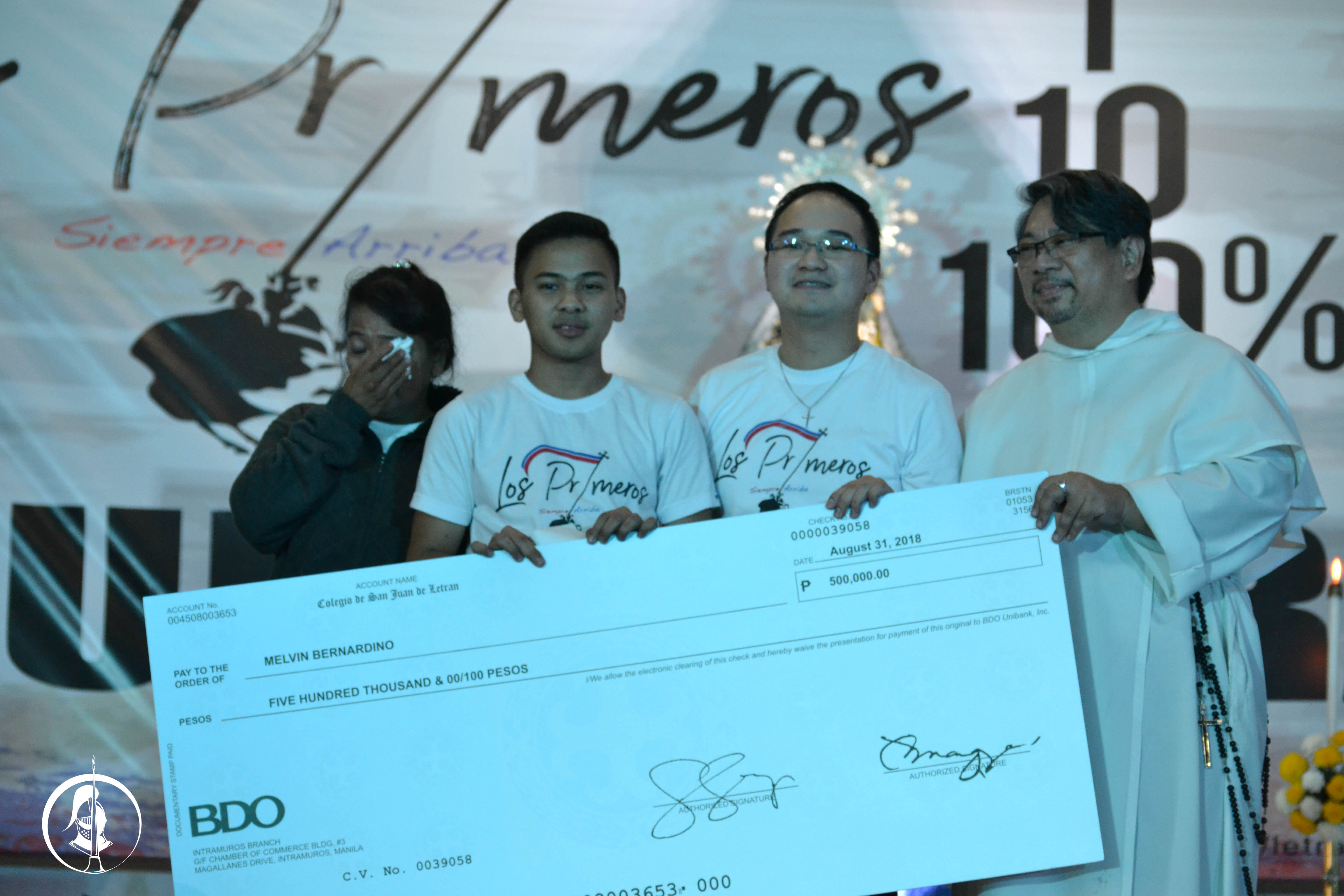 The Colegio conferred the top one in ND board exams Melvin Bernardino a cash price of P500,000 as a token of appreciation. (Enriquie Agcaoili/The LANCE)