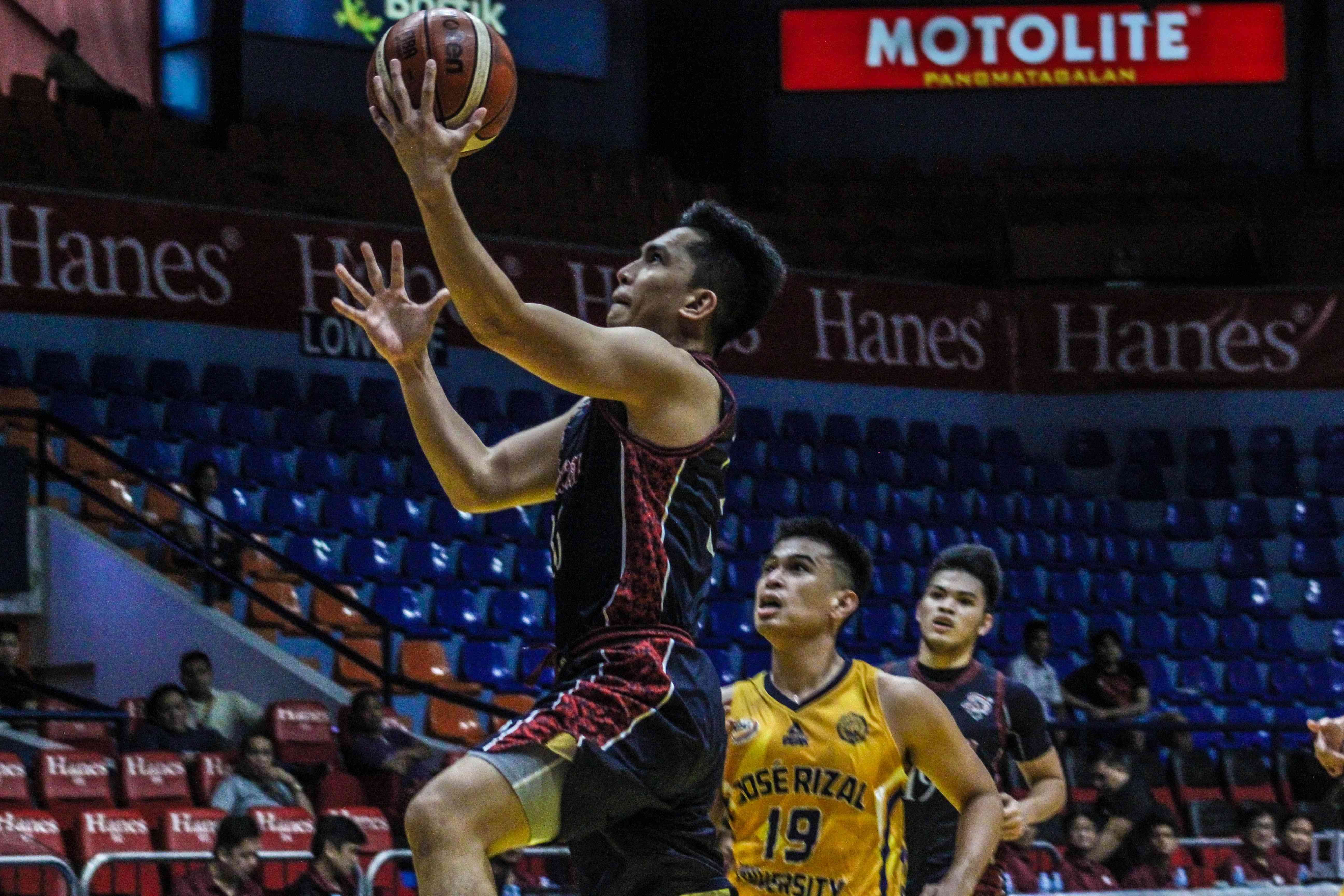 SOAR HIGH. Koy Galvelo soars high for a lay-up in Letran's 89-79 win against JRU. Photo by Angela Davocol/The LANCE.