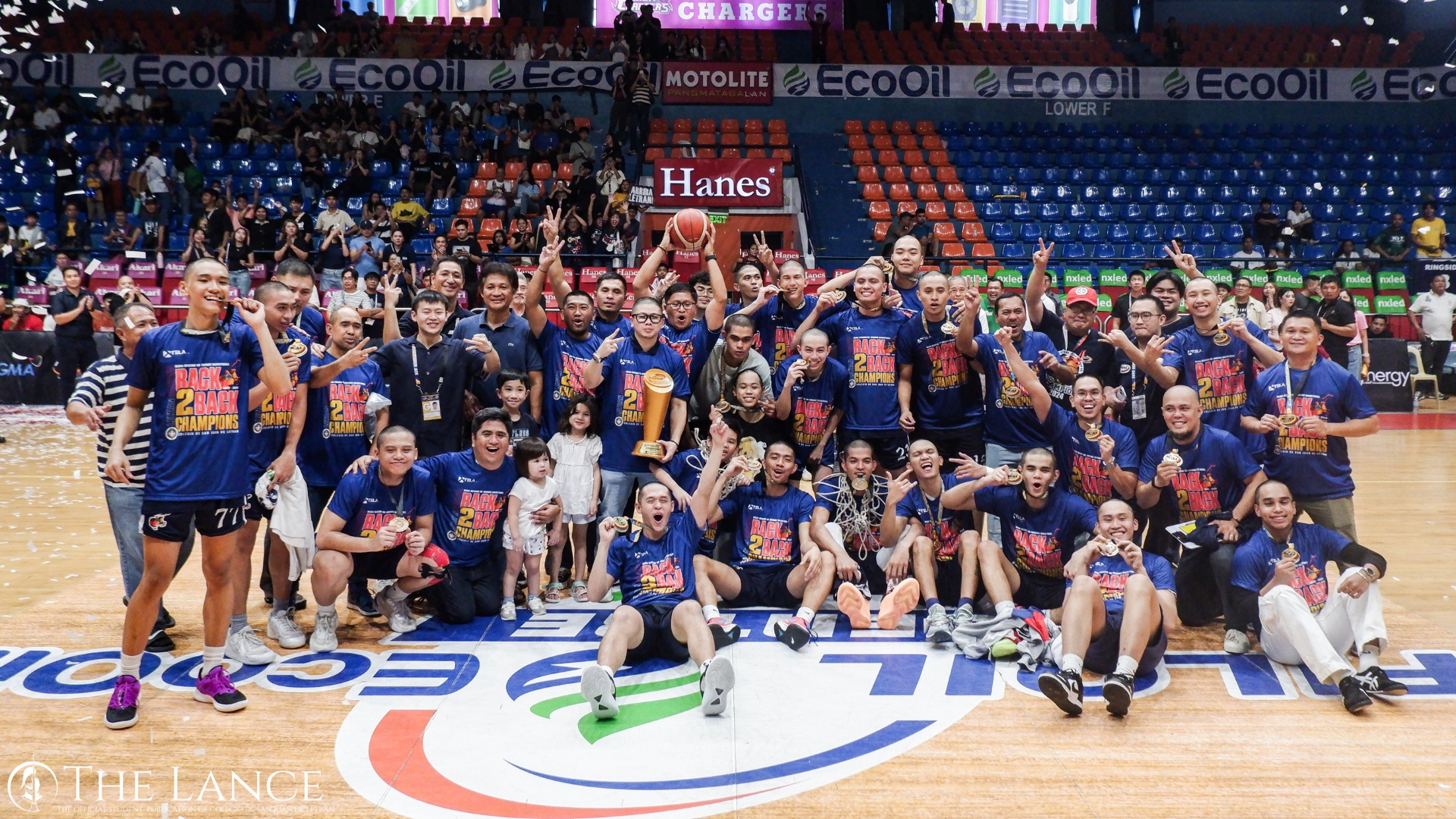 With the back-to-back Championship in NCAA Junior's Basketball secured, the Letran Squires pose for their pictorial together with the trophy