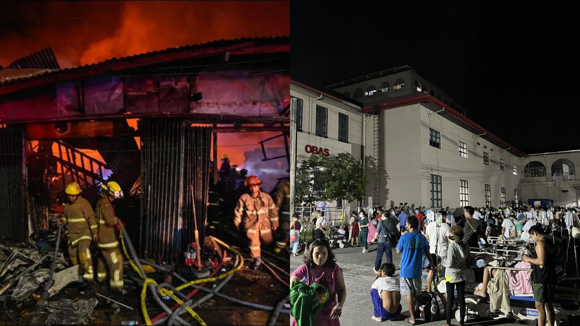 Consecutive fires erupt in major areas overnight in Manila as the nation reels with hot temperatures. Photos courtesy of ABS-CBN News (left) and Bombo Radyo Philippines (right).