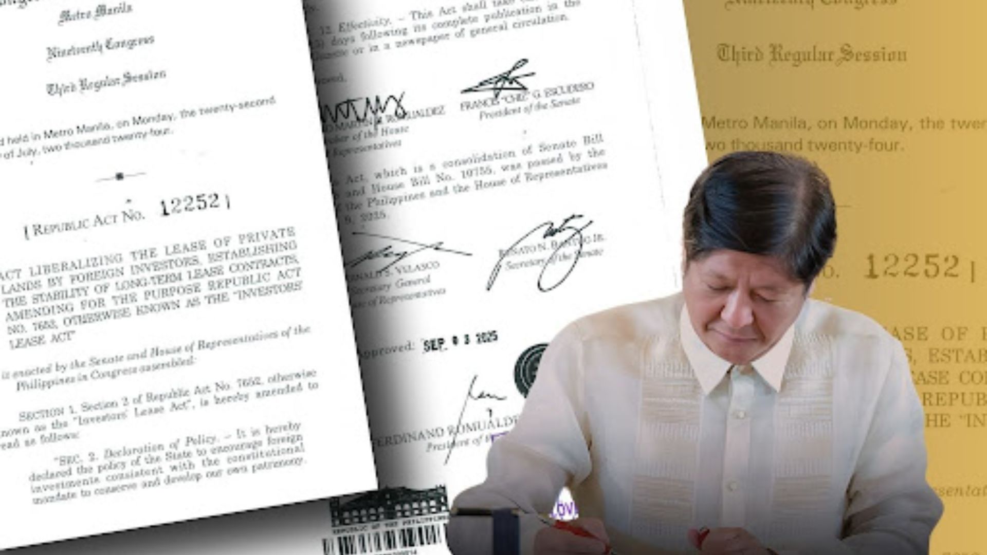 President Ferdinand Marcos Jr. has officially signed Republic Act (RA) 12252, on Friday, Aug. 29, a law liberalizing the lease of private lands by foreign investors and extending the long-term lease contracts from 50 years up to 99 years.