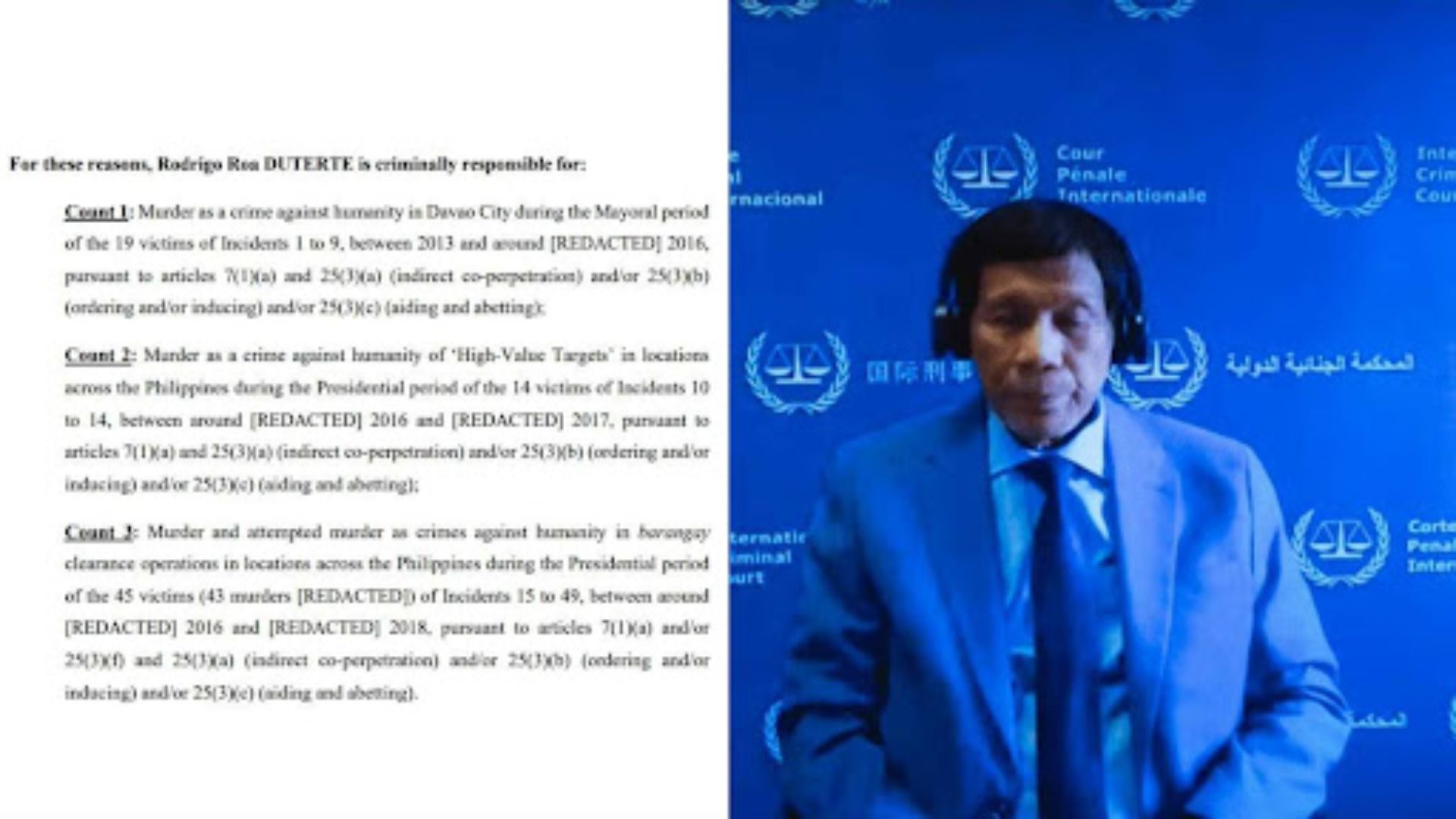 According to the ICC document, the prosecution held Duterte criminally liable for 3 counts of murder: