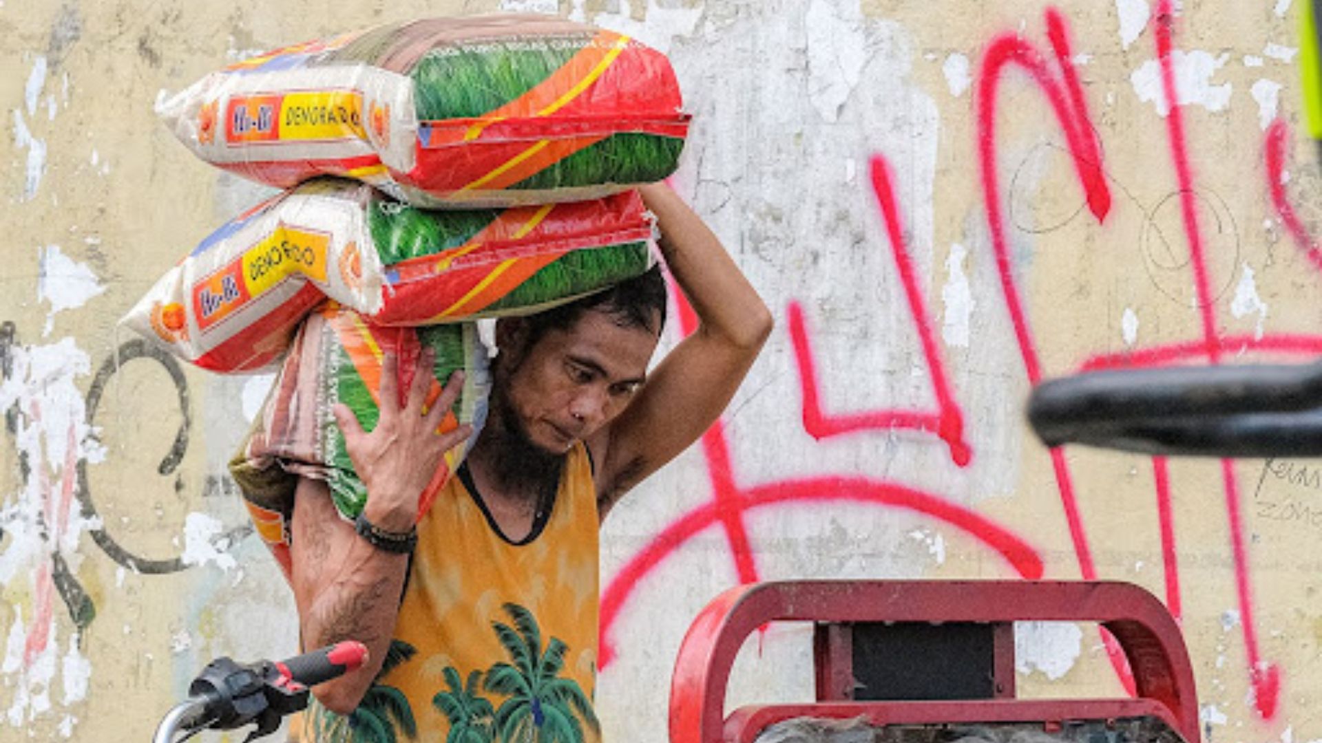 Workers unload sacks of rice along Dagupan Street in Manila. Photo: Ryan Baldemor / Philippine Star