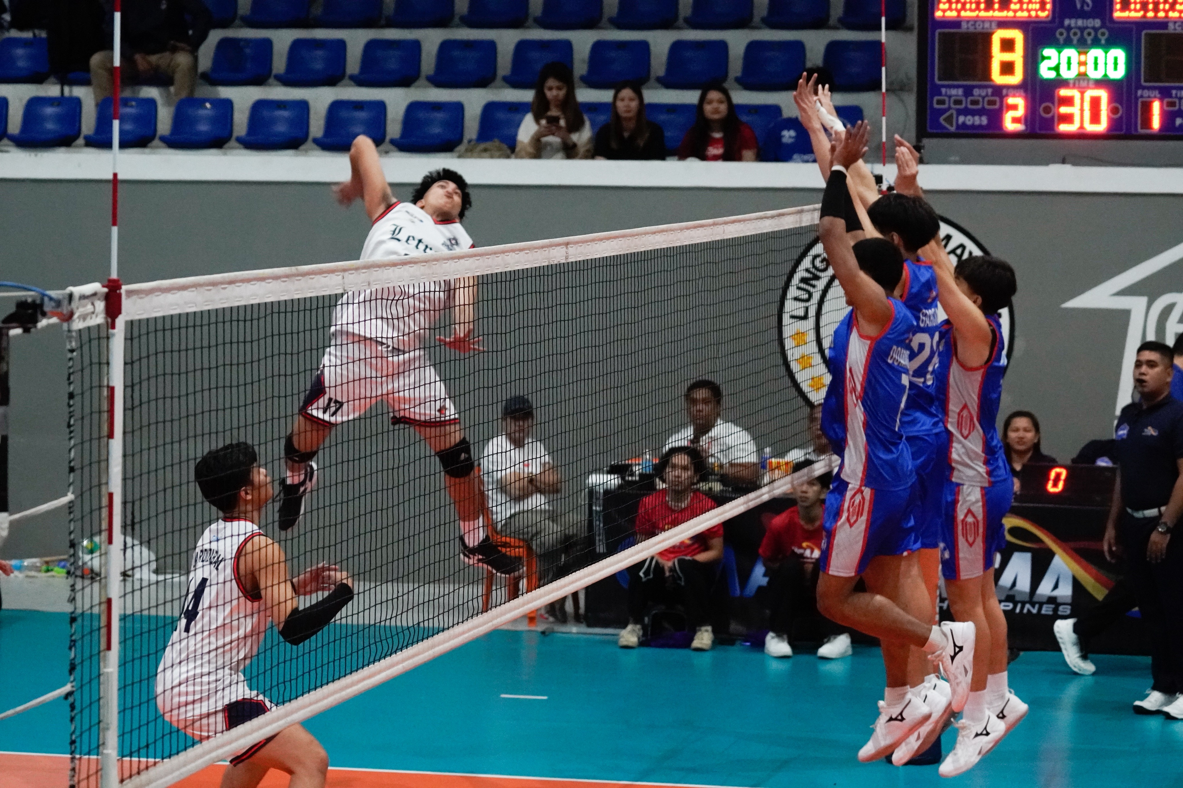 The third set was another nail-biter, both teams scored consistently, but neither was able to cling to a comfortable cushion. The lead change was constant as service errors plagued the two teams, but Bautista’s high-flying attacks kept the game close for Letran.