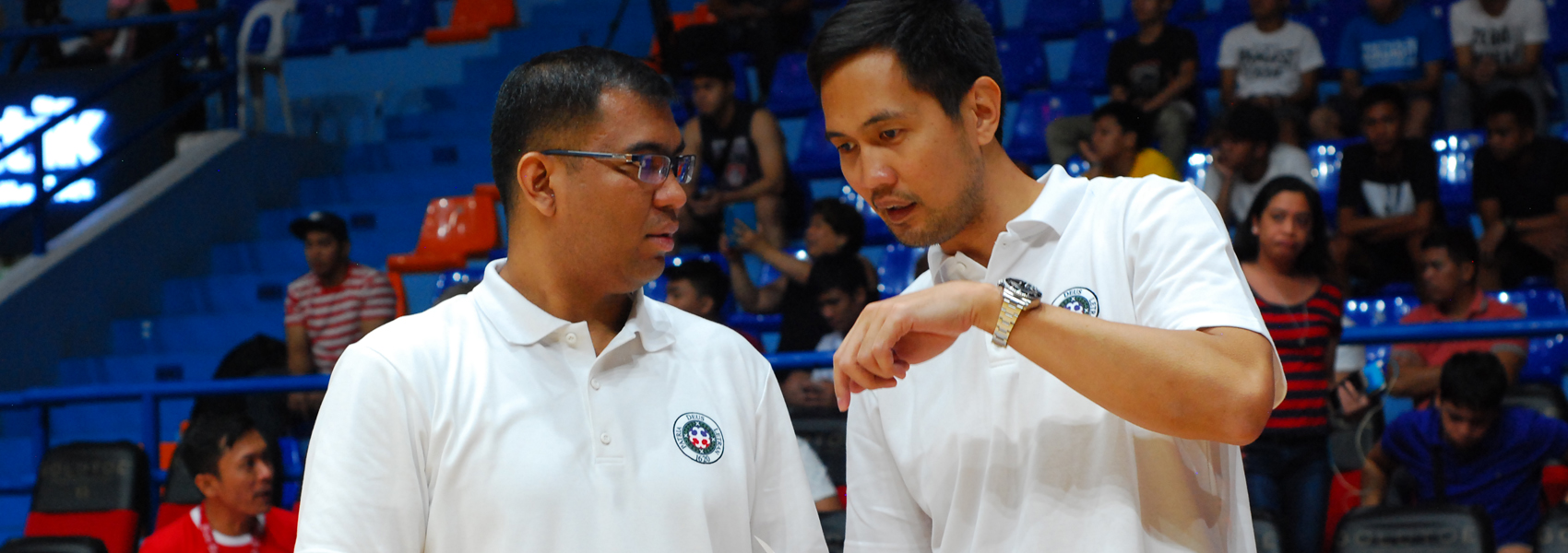 THE 'KID' RETURNS. Former Letran star cager Kerby Raymundo (right) serves as a new addition under the coaching staff of head coach Jeff Napa (left).